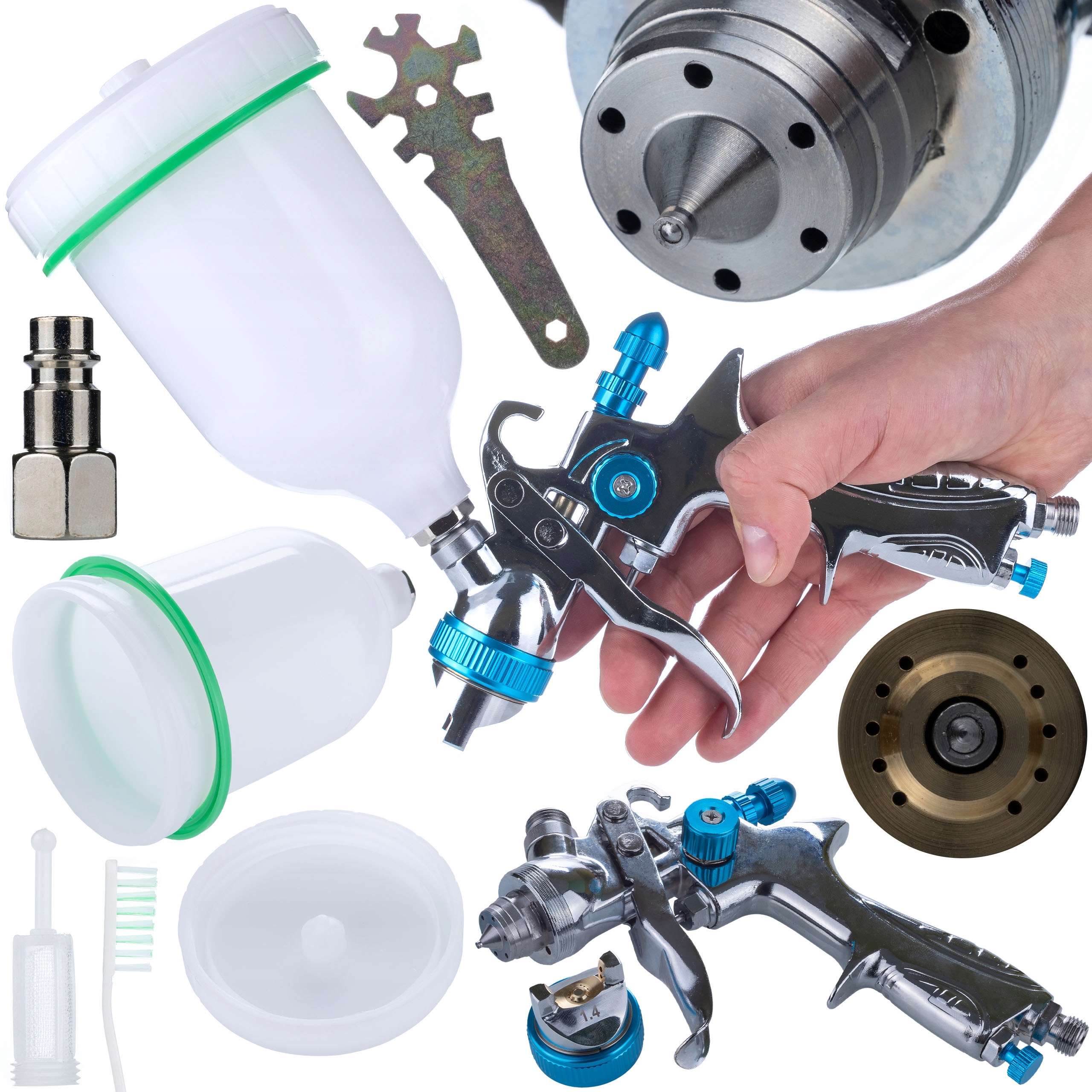 ✅ Розмір сопла 1,4 мм: Відповідне сопло для точного та рівномірного нанесення різних типів матеріалів, що забезпечує високу якість лакофарбового покриття.