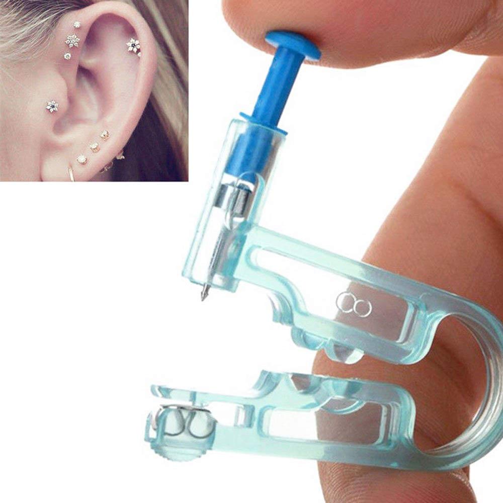 5 X. Пристрої (кожен пронизливий пістолет із вбудованою сережкою)Цінний пакет - Кожен набір для пірсингу вуха містить 5 самозайняних пістолетів для пронизливих вух із вбудованою сережкою, 5 чистими інструментами та 1 пристроєм для пірсингу. Використовується як початківцями, так і професіоналами.