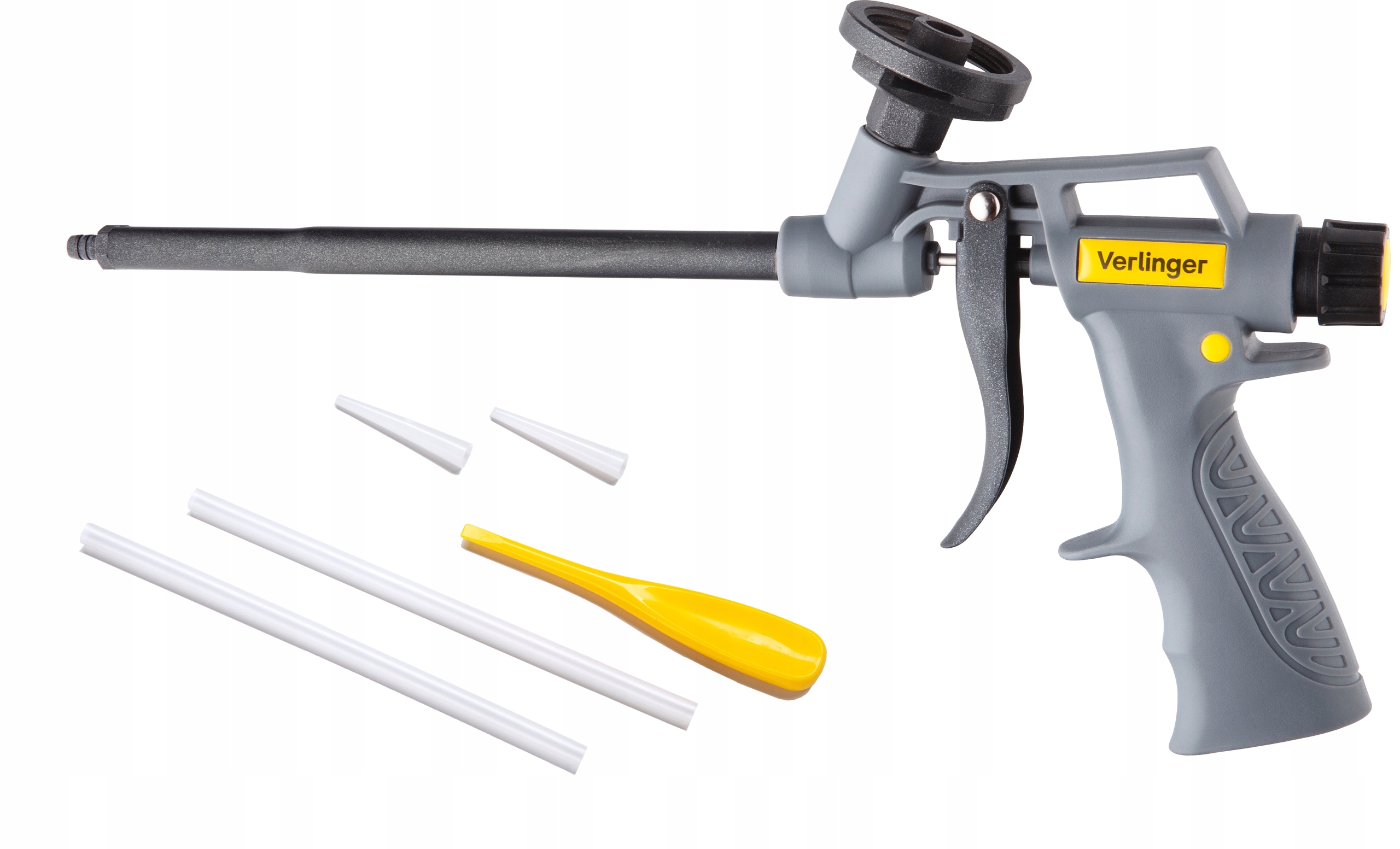 Цей продукт призначений для використання з усіма типами монтажної піни та поліуретанових клеїв, які призначені для використання з пістолетом.