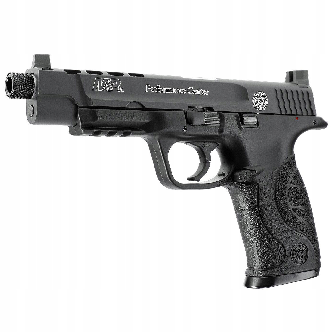 Smith&Wesson M&P9L Performance Center Ported 4.5 mm CO2 — це сучасна пневматична зброя CO2 з противідкатним механізмом, рукояткою зі змінними накладками, металевим замком із портами та піднятими прицільними пристосуваннями.