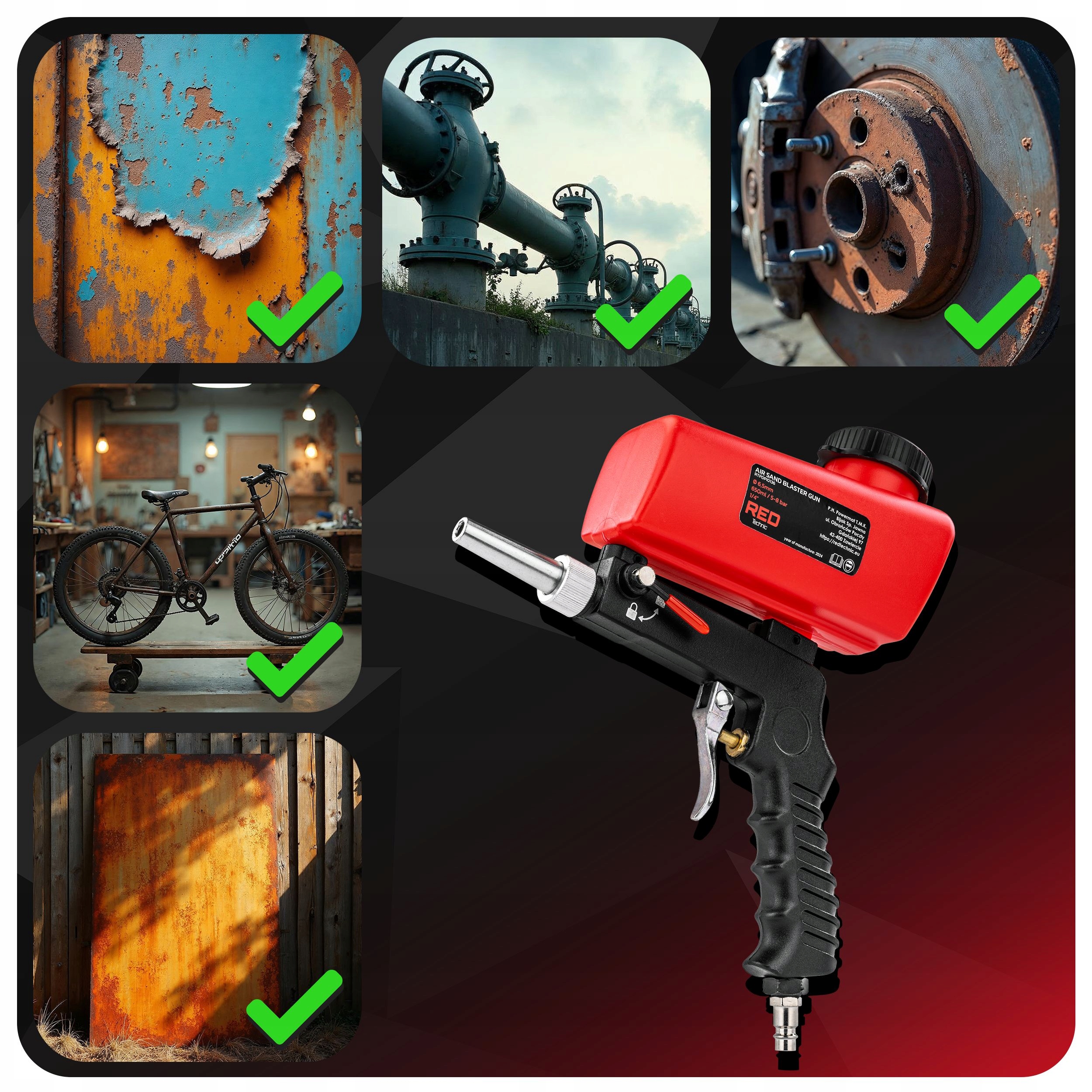 пістолет з піскоструминкою червона техніка - це не лише інструмент, це гарантія надійності B>, Точність та Порядок деталей - функції, що відрізняють наш пристрій на ринку. Інвестуйте в визначеність, вибравши товар у польського виробника!