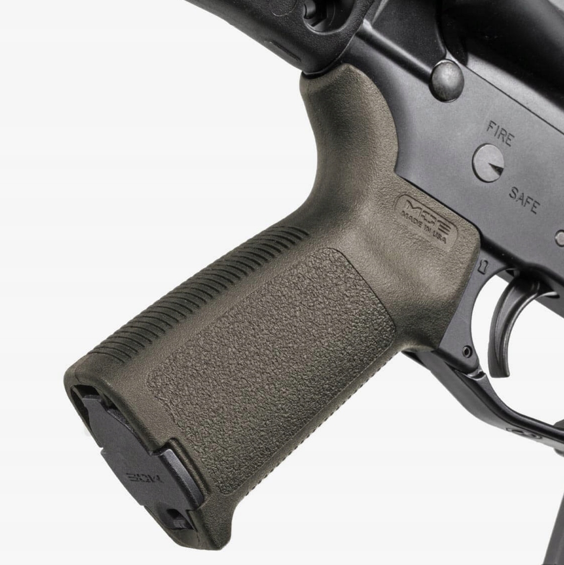 Установка пістолетної рукоятки MOE GRIP проста і може монтуватися на більшість стандартних нижніх елементів зброї, які сумісні з рукоятками цього профілю.