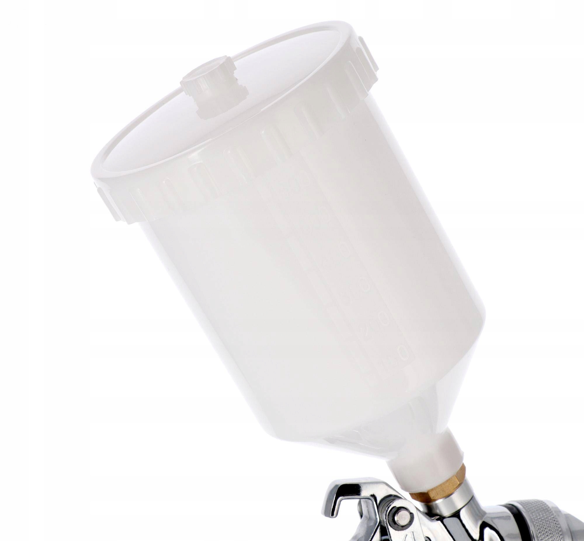 - Фарбувальний пістолет з верхнім баком ємністю 600 мл забезпечує хороший доступ до сопла та рівномірний розподіл матеріалу.