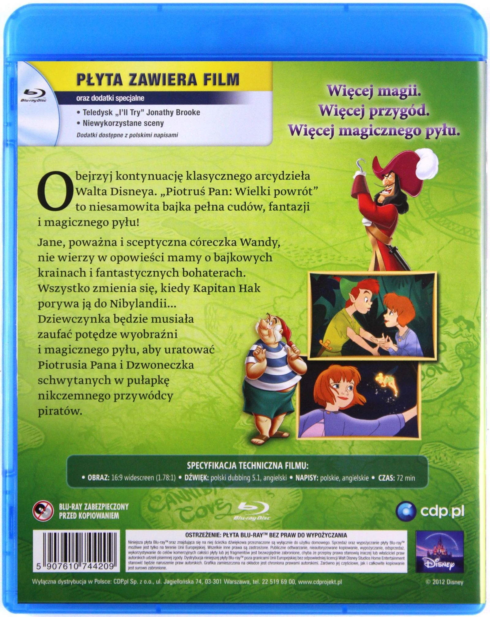 Велике повернення Пітера Пена, який приходить прямо з «другої зірки праворуч», щоб пережити нові пригоди, сповнені гумору та фантазії, — чудова розвага для всієї родини. У фільмі повертаються відомі персонажі класичної анімації Уолта Діснея: Дінь-Дінь, Загублені хлопчики та Капітан Гак. Також з'являються нові герої. Тож ви зустрінете скептично налаштовану Джейн – доньку Венді, яка не вірить у казки і вважає, що переросла дитячі історії матері про літаючого Пітера Пена, магію та силу уяви. Однак, коли піратський корабель Капітана Гака причалює до Лондона і викрадає Джейн у фантастичну країну під назвою Неверленд, дівчина змінює своє рішення. Він виявляє, що помста Пітеру Пену все ще є найважливішою метою Гака. Тому, коли Пітер Пен і Тінкер Белл потрапляють у пастку, лише Джейн може врятувати їх. Він повинен довіритися своїй уяві, повірити в силу казкового пилу та полетіти, щоб врятувати Пітера та всю Неверленд.