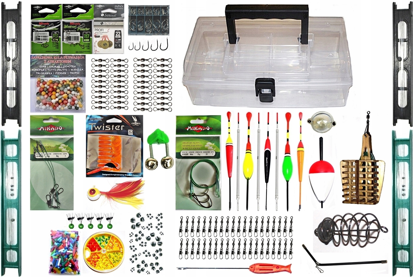 коробка + 770 штук аксесуарів, корисні під час поїздок на риболовлі. Різні кольори та вага, включаючи: