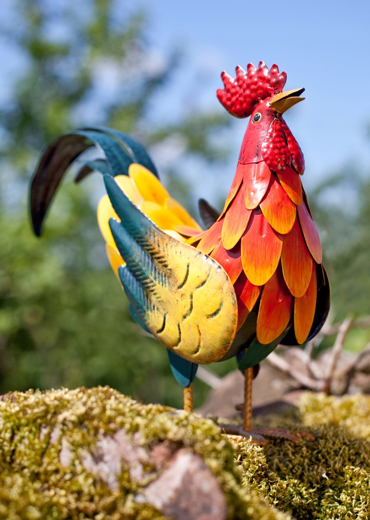 Садові фігурки можна, звичайно, також можна розмістити всередині будиночка, оскільки вони дуже естетично виготовлені, а кожне олов’яне перо представленого півня розписано вручну, щоб надати йому унікального характеру. Декоративний півень стане чудовою прикрасою тераси, саду або інтер'єру. Відносно невеликий розмір цього півня дозволяє розмістити його в багатьох місцях, наприклад, на каміні чи комоді, що забезпечує велику свободу та творчість.