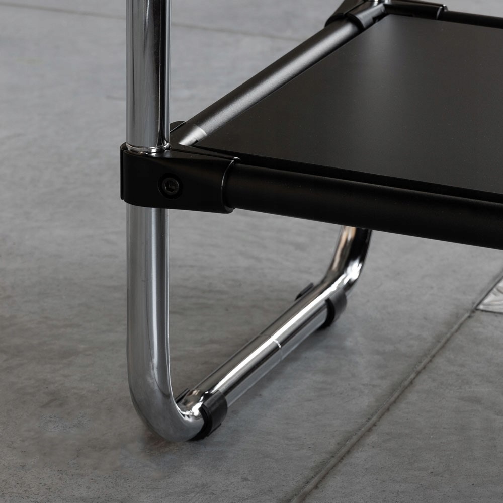 Tris Chrom розроблений польською компанією Shop Line з Надажина - це універсальна система елементів, що дозволяє будувати різноманітні меблеві конструкції, такі як: полиці, столи, столи, столи, вішалки, вбудовані шафи, шафи-купе. Це дозволяє адаптувати розробку до індивідуальних потреб. Він також добре працюватиме в таких структурах, як прилавки, стенди, виставкові чи рекламні рами. Єдиним обмеженням для використання є ваша уява.