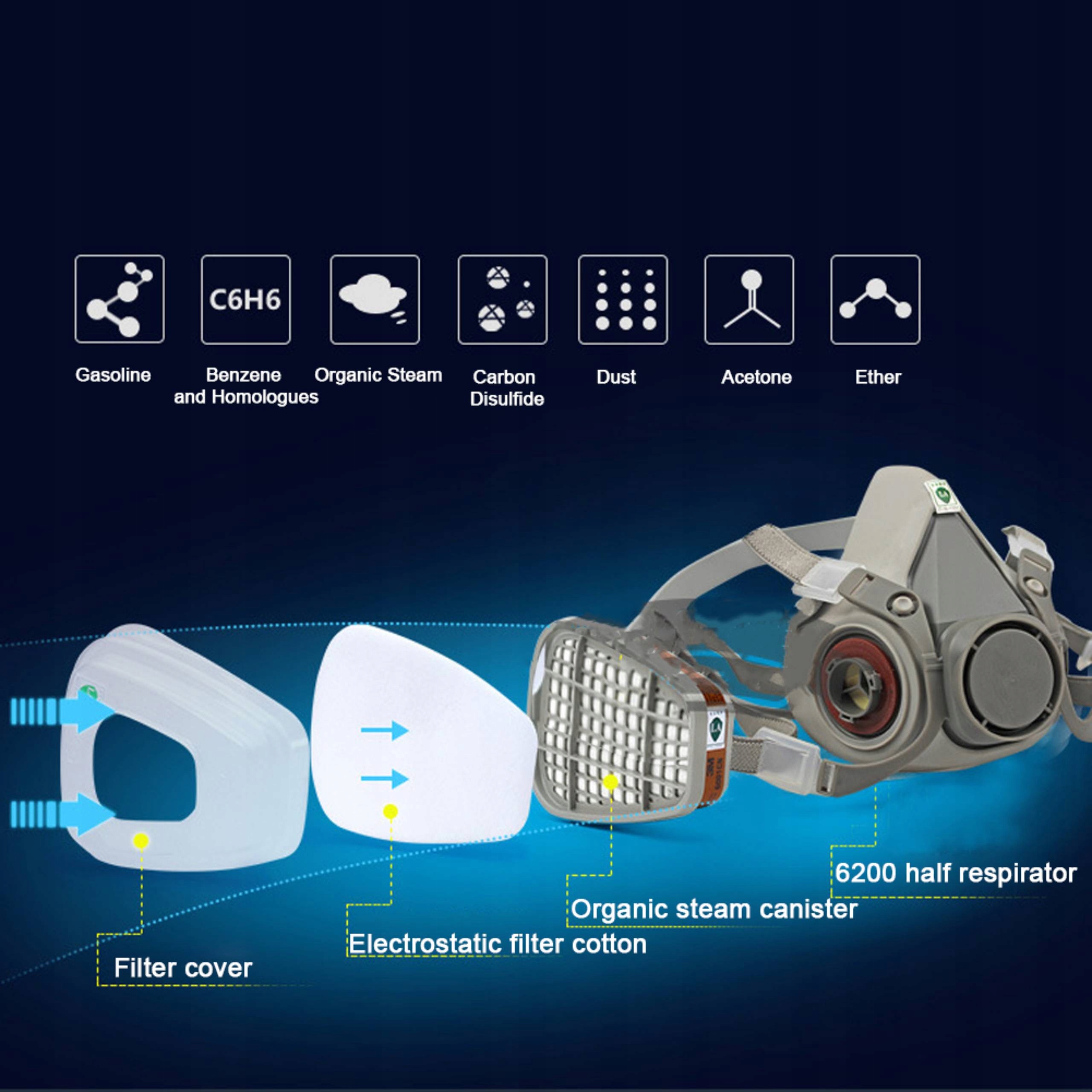 ⏺Ефективна фільтрація,насолоджуйтесь диханням, професійний фільтр фарби туман, кислотний туман, антицементна пилова отрута, запах пестицидів тощо.