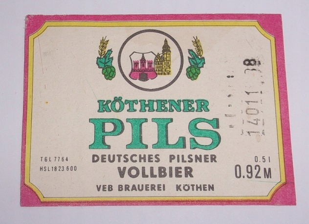 пивна етикетка Антикваріат НДР Vollbier Kothen Pils