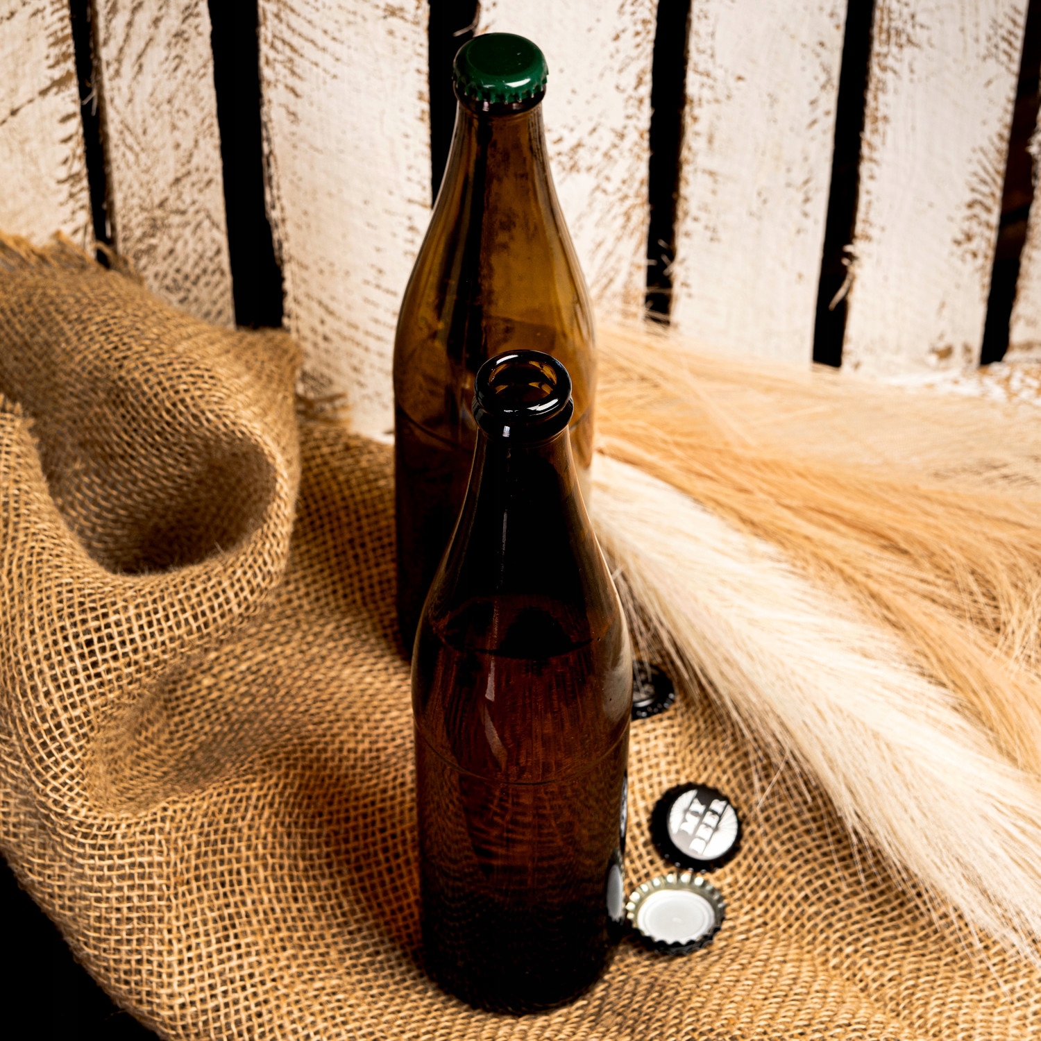 Скляна пляшка для ПИВА 500 мл - ВЗІЗУНОК 2, КОРИЧНЕВА, виготовлена з високоякісного скла.