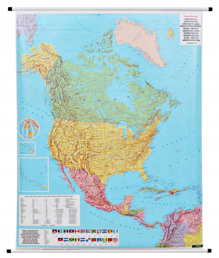 Карта політичної стіни Північної Америки за шкалою 1: 8 000 000 Freytag & Berndt.