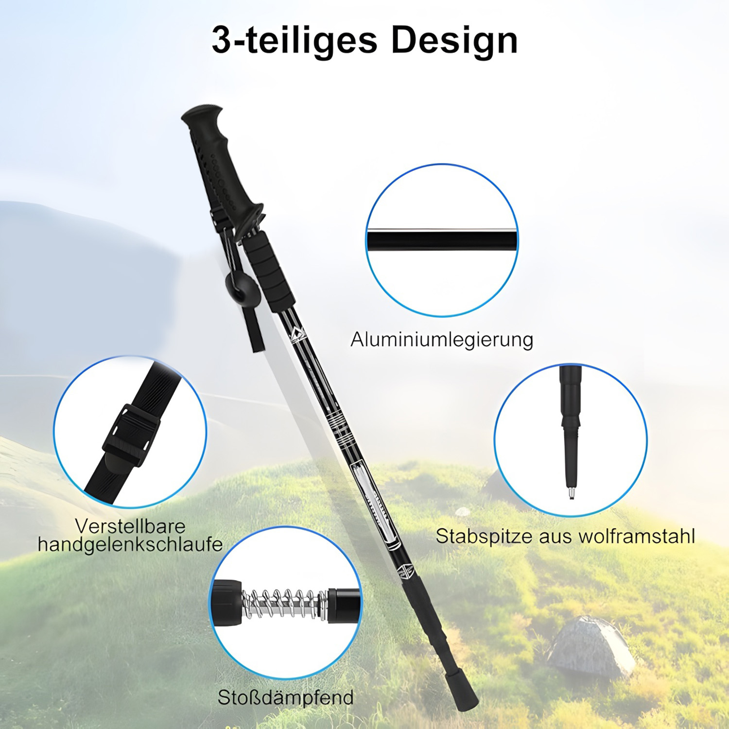 【Легкість】 Ультра -світло вага похідних полюсів робить їх дуже зручними для носіння. Це може бути найкращим помічником під час вашої подорожі.