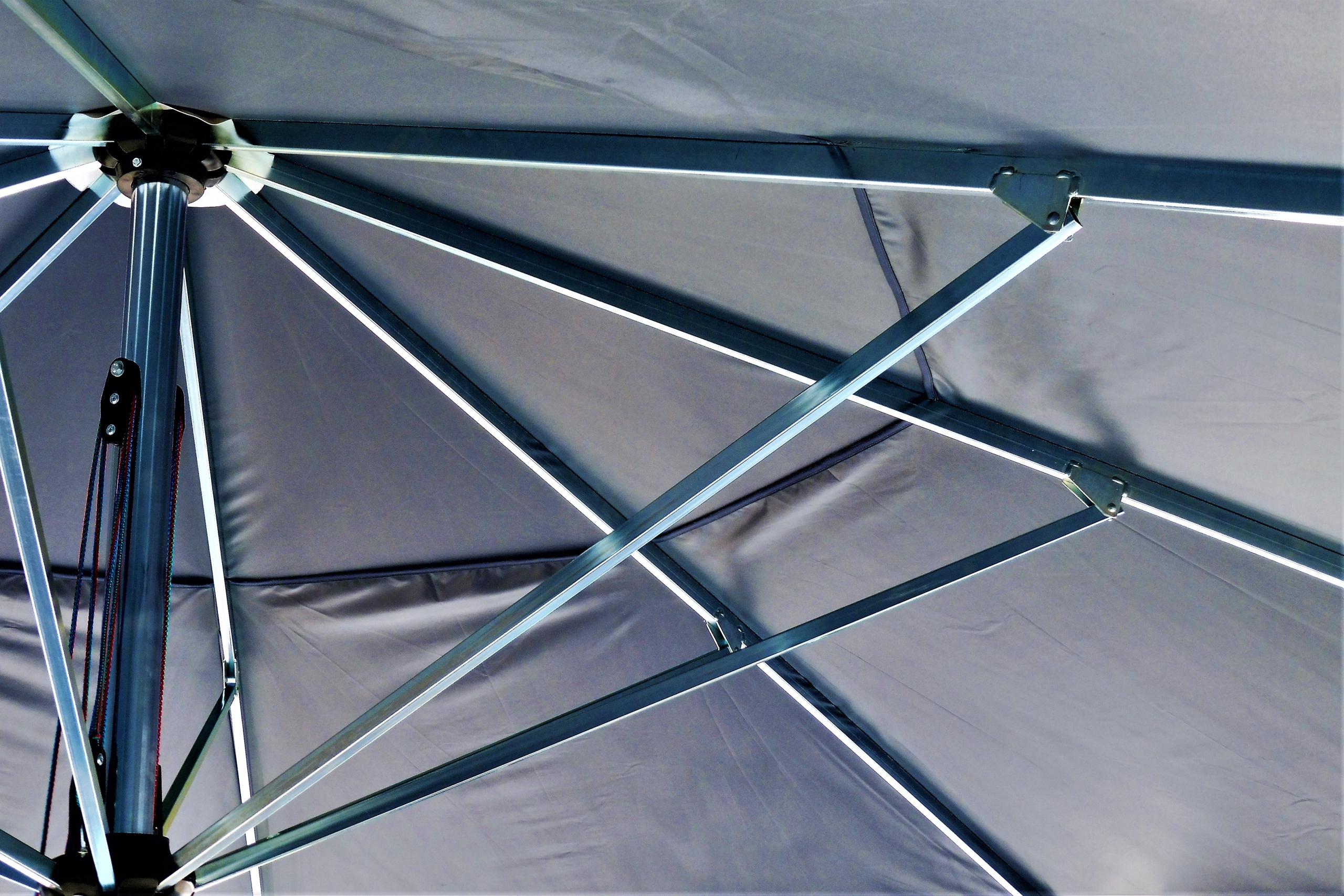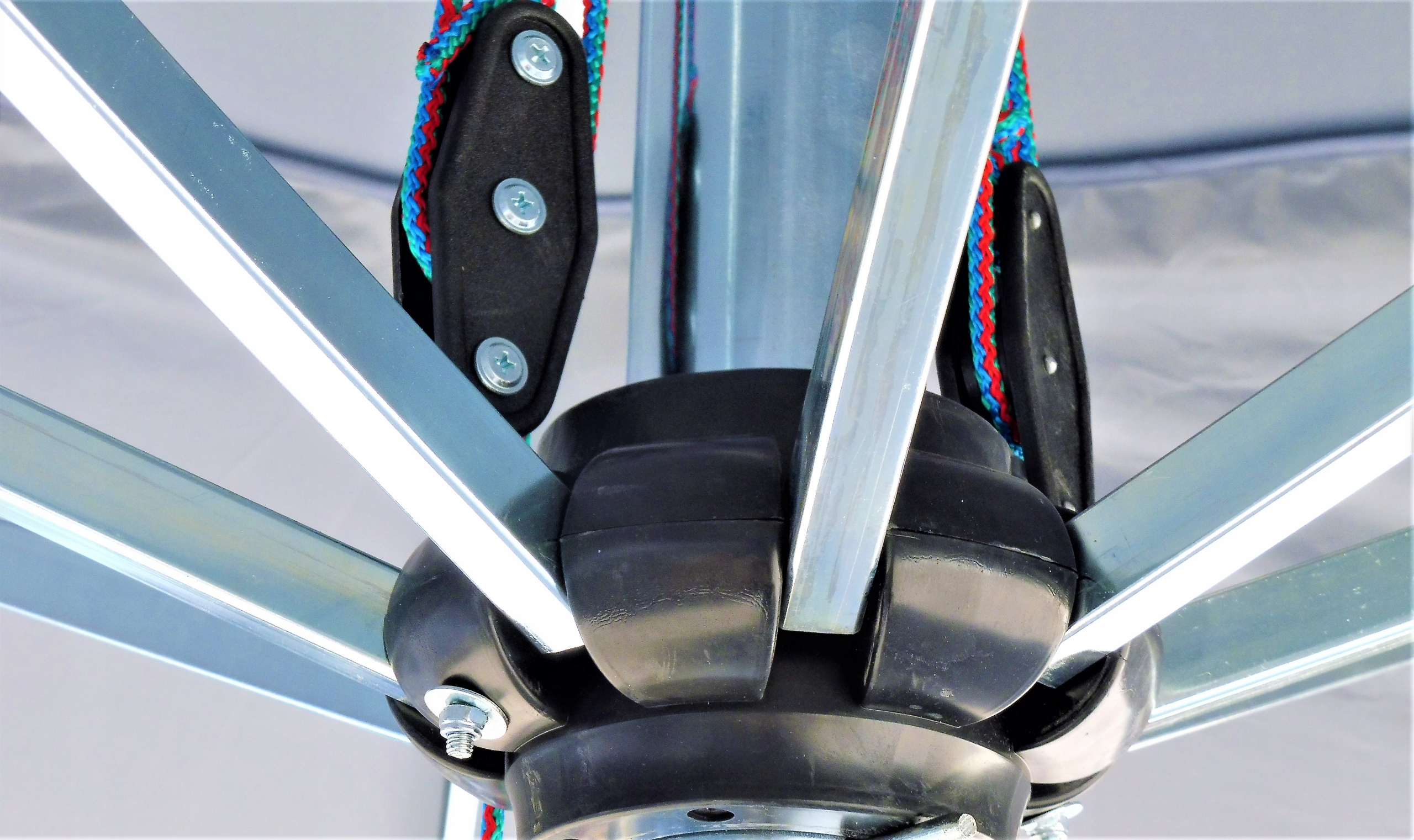 *суцільна розетка під чохлом у верхній частині парасольки додатково захищений матеріалом, що захищає від матеріальних пошкоджень