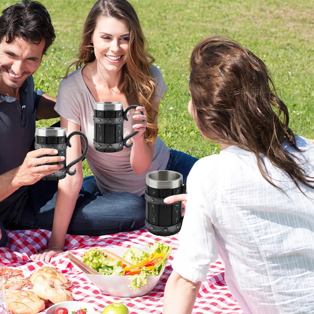 ☑️Внутрішня частина пивного кухля виготовлена з нержавіючої сталі та смоляного корпусу, він міцний, нержавіючий, безпечний і здоровий для пиття, має гарну довговічність і зносостійкість, тривалий час використання.