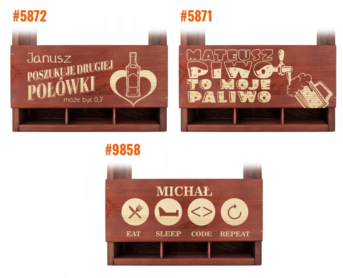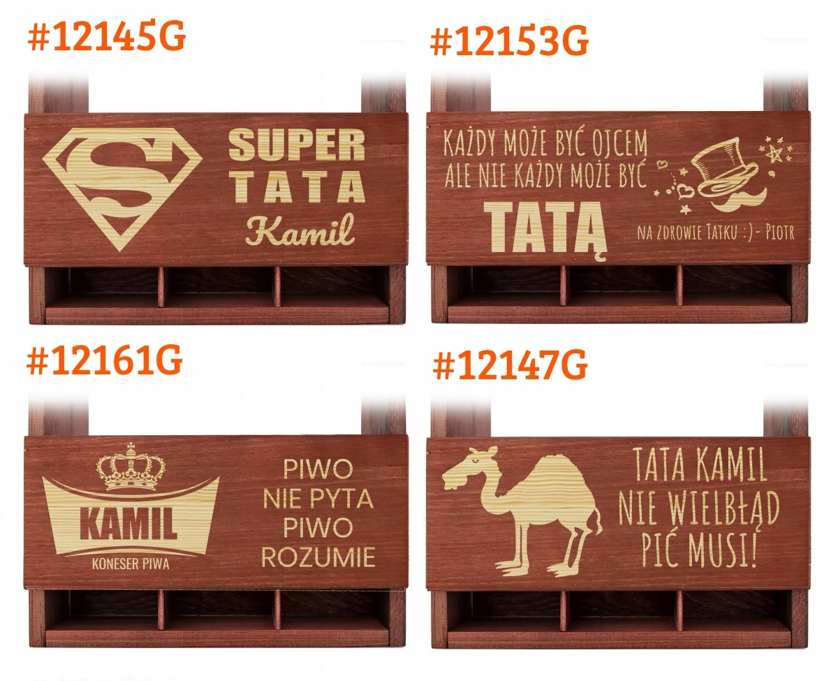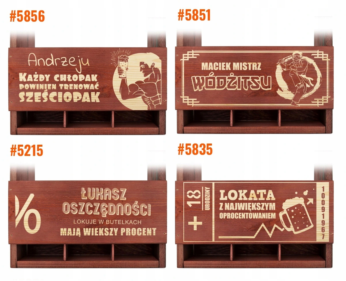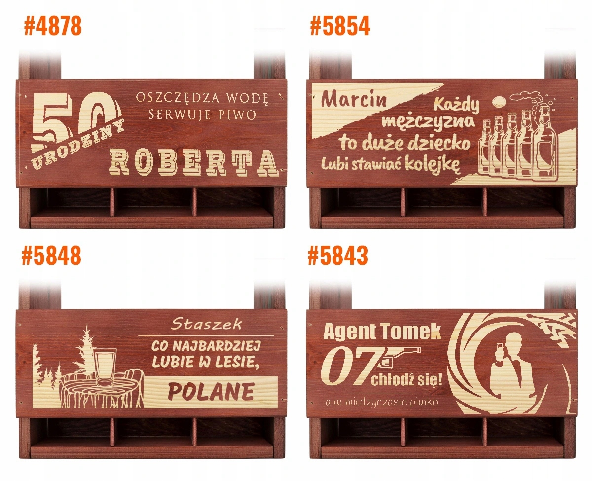 У нас є для вас чудова ідея подарунка — персоналізована дерев’яна переноска для пива! Товар виготовлено польським виробником. Збоку на чохлі прикріплена відкривачка з високоякісної нержавіючої сталі. Чудово підійде як подарунок на день народження, іменини, день батька чи новосілля. Ми зробимо індивідуальне гравіювання безпосередньо на поверхні коробки, що зробить її чудовим сувеніром. Це не тільки практичний подарунок, а й ефектне доповнення інтер'єру. Коробки можуть мати характерні недоліки - це не дефект, а навмисний візуальний ефект.