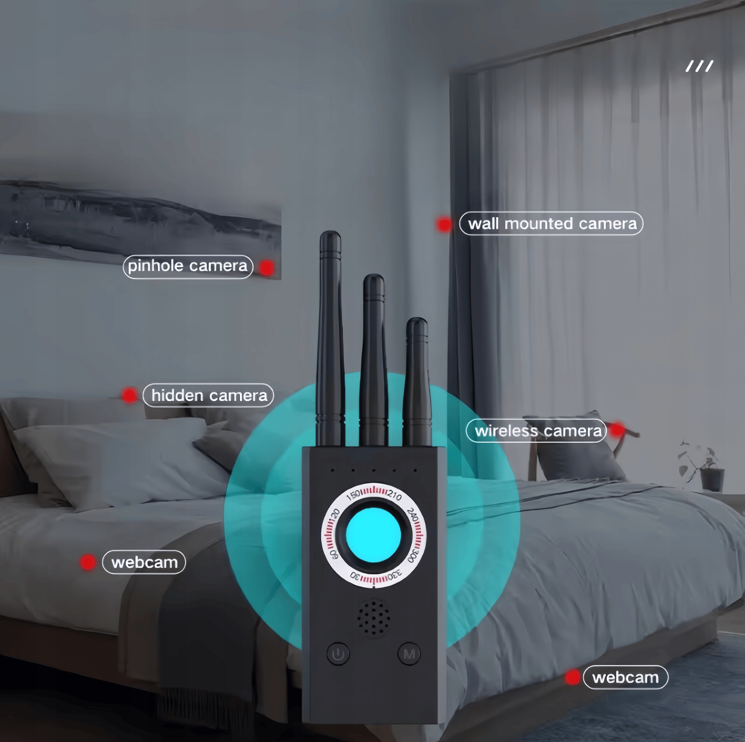3. Детектор об'єктива камери та детектор камери, завдяки новій технології інфрачервоного лазерного сканування за допомогою простого візуального управління, щоб знайти камери прихованих отворів.