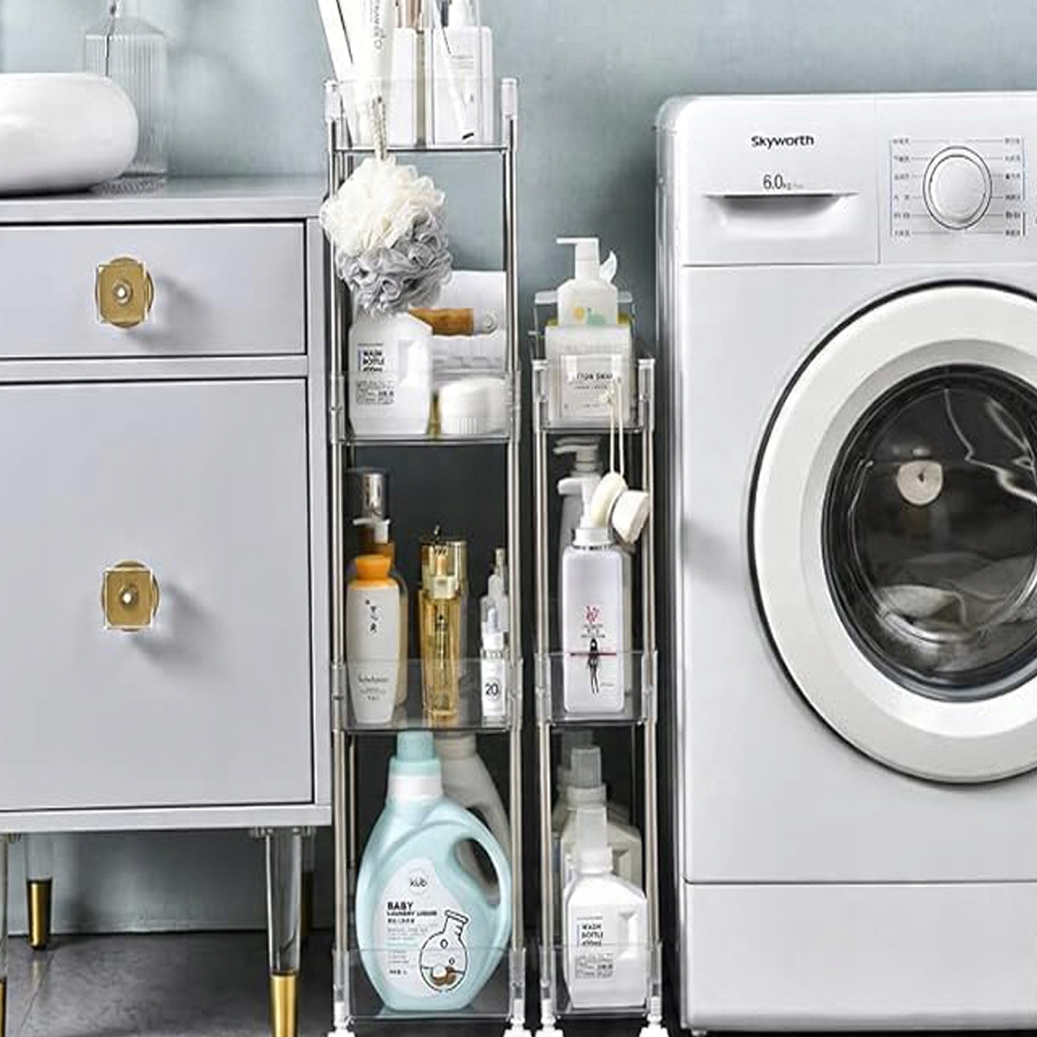 Стелаж для зберігання — це невеликий візок із універсальними колесами для універсального переміщення. Він має три функції зберігання, і його можна розсувати по дому, коли він не використовується, заощаджуючи місце.