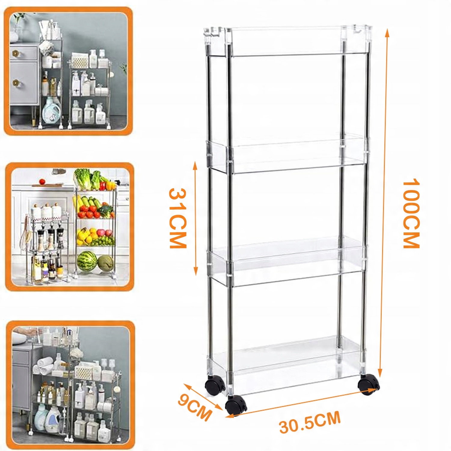 - Прозорий візок Hooha – це ідеальне поєднання стилю та ручки. Це ідеальне рішення для зберігання багатьох речей, збереження простору та порядку, а зовнішні рами, більше місця для зберігання, ви можна повісити на них легкі предмети. Рухома та зручна конструкція з 4 гладкими та міцними колесами, які легко ковзають, завдяки чому візок для зберігання легко тягнути та зручно переміщувати під час транспортування.