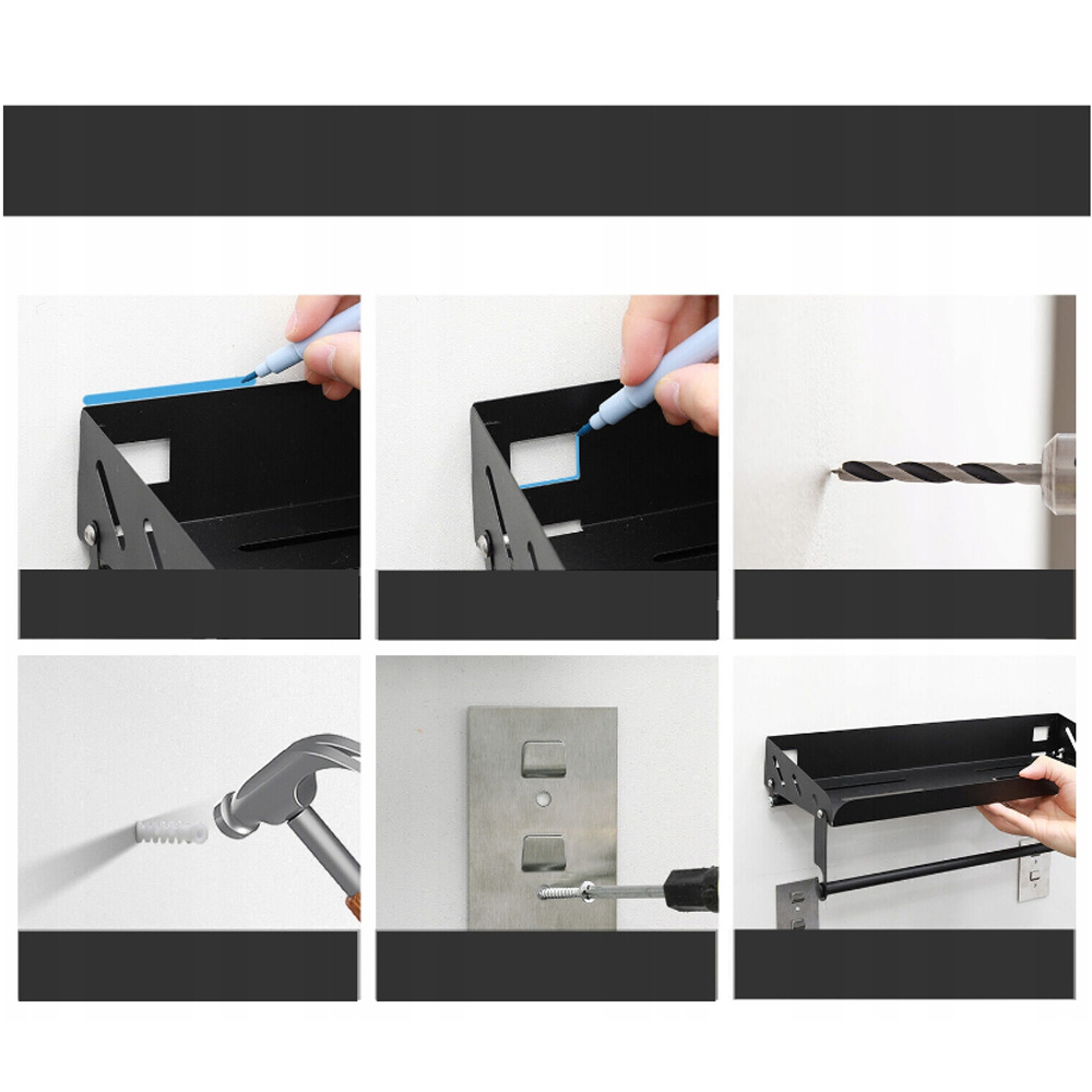PÓŁKA KUCHENNA ŚCIENNA WISZĄCA NA PRZYPRAWY Z 8 HACZYKAMI, STAL NIERDZEWNA