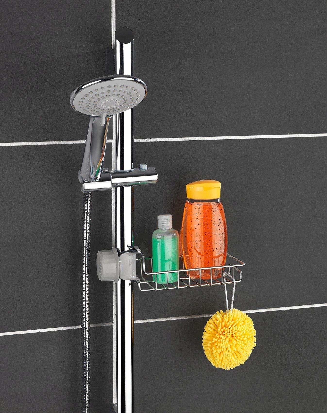 Ви можете витратити час, заощаджений на тривалому купанні, оскільки косметика тепер доступна, ви можете мати все необхідне для купання у ванні або душі під рукою. Практична полиця для ванної ідеально підходить для зберігання всіх видів душових аксесуарів. Завдяки індивідуальній ручці, що регулюється, його можна вільно встановити майже на всі душові штанги.