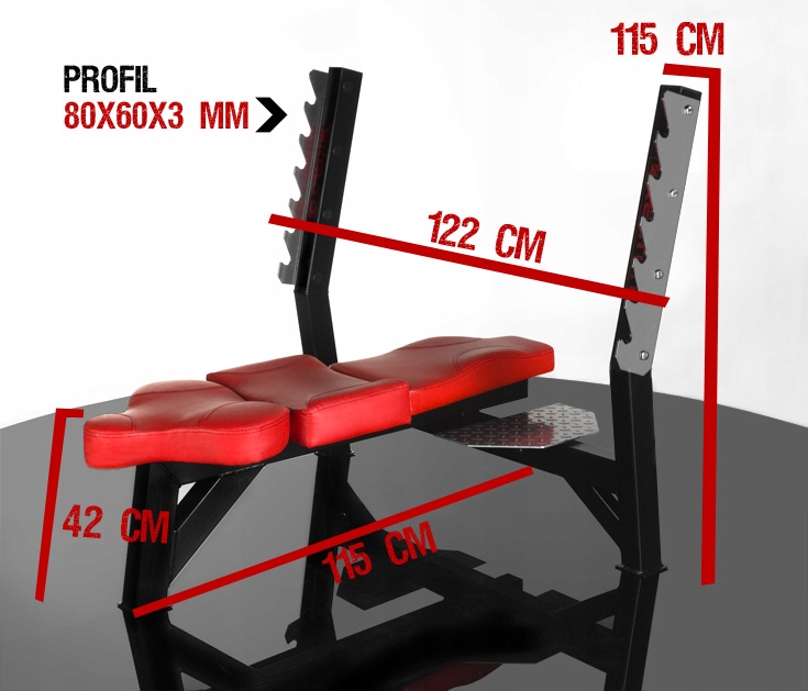 Ми розробляли дизайн вашої нової клубної лавки протягом кількох місяців. Ми зосередилися на доопрацюванні найдрібніших деталей і кутів з'єднання елементів. Ми знаємо, наскільки ви та ваші клієнти вимогливі, тому виготовили конструкцію з високоякісного профілю 80х60 мм з товщиною стінки 3 мм. Це гарантує його стійкість до 800 кілограмів навантаження. Відстань між стійками всередині 110 см, що дозволяє тренуватися з олімпійською штангою 220 см. Ергономічна форма та розміри лави дозволяють вільно розташувати її у вашій кімнаті для тренувань.