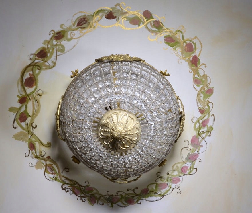 Королівська стеля з кристалами - Золота стельова лампа - Стиль Людвіка - Бароко - Гламур