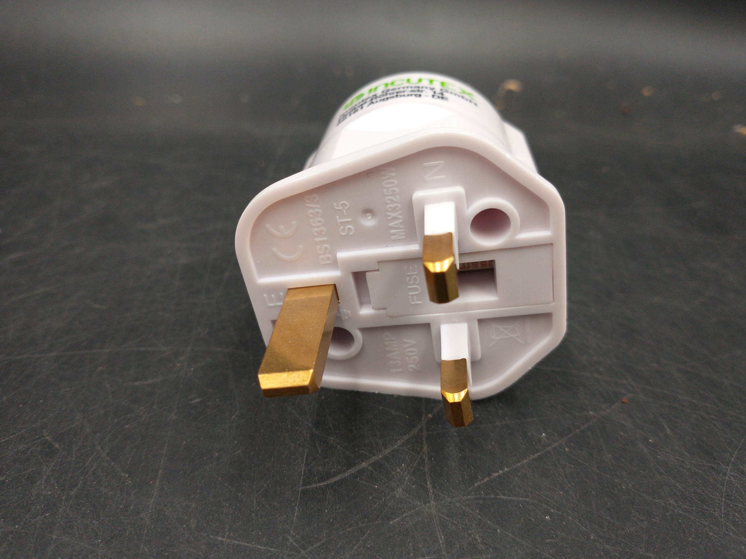 - 0-250 V, Fuse 13 A, Max. 3250 Вт, BS 1363, із захисним контактом, розміри: 7 х 5 х 5 см, вага: 49 г.