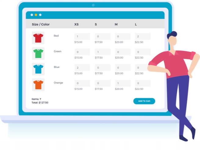 Повне рішення для керування та відображення варіантів продукту. Масово додавайте та редагуйте варіанти та відображайте їх у зручній для користувача таблиці або ціновій матриці.