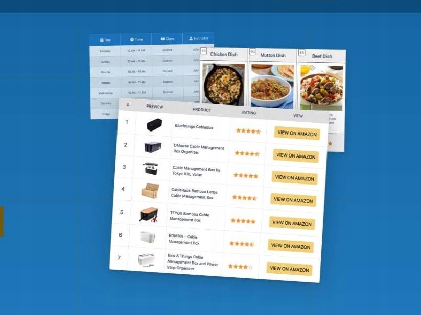WP Table Builder – це конструктор таблиць із функцією перетягування, який забезпечує простоту та потужність конструкторів сторінок таблиць. Від таблиць цін до розкладів, меню ресторану, списків продуктів, інформації тощо, якщо ви маєте на увазі якусь таблицю, ви, ймовірно, можете створити її за допомогою цього плагіна.