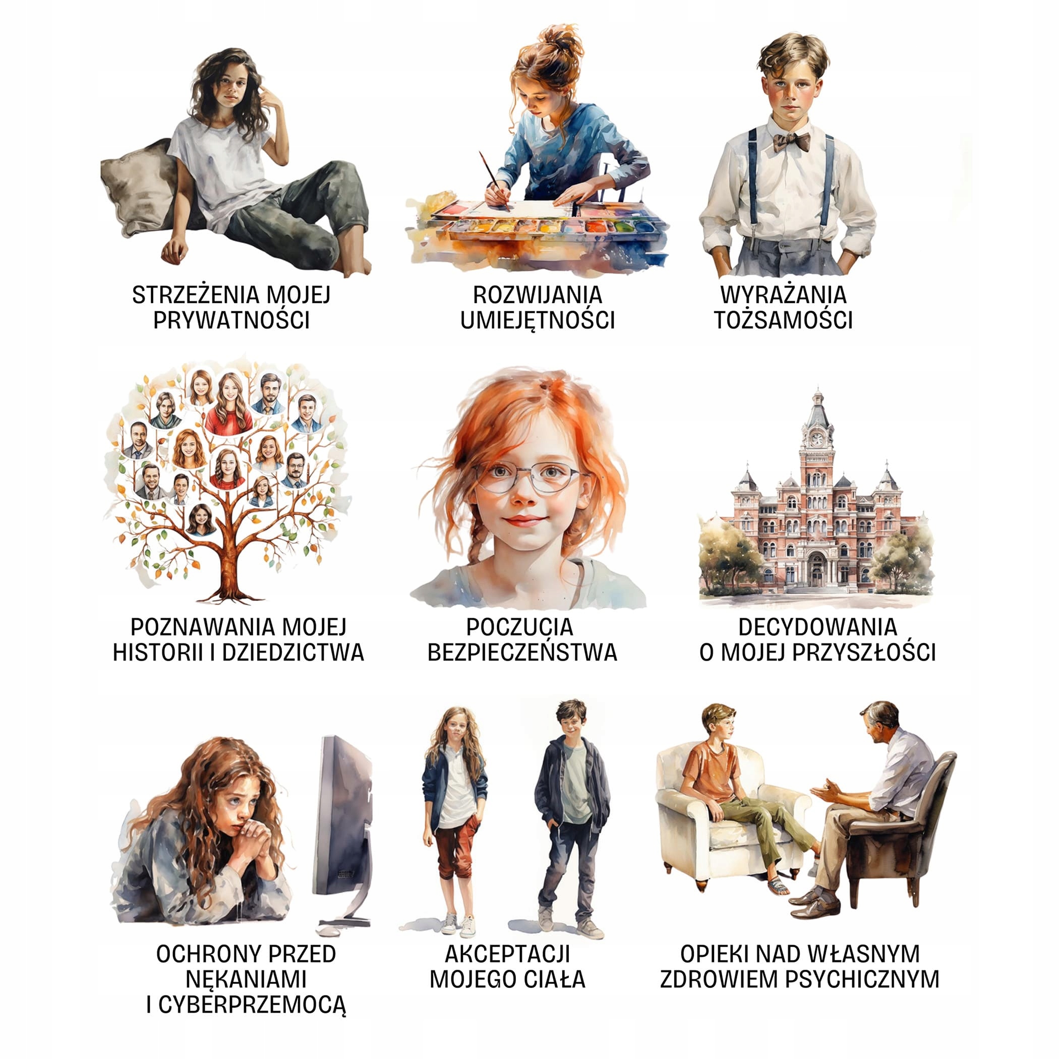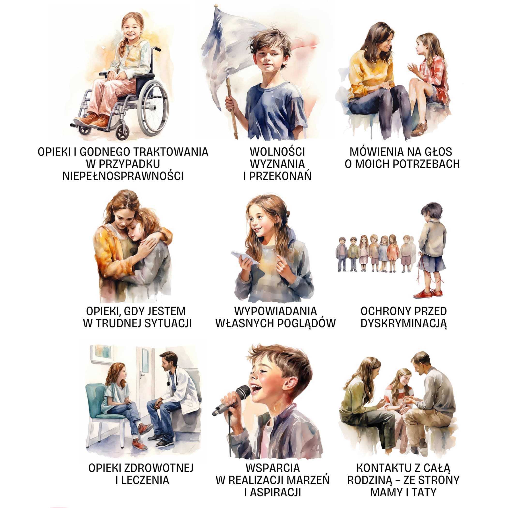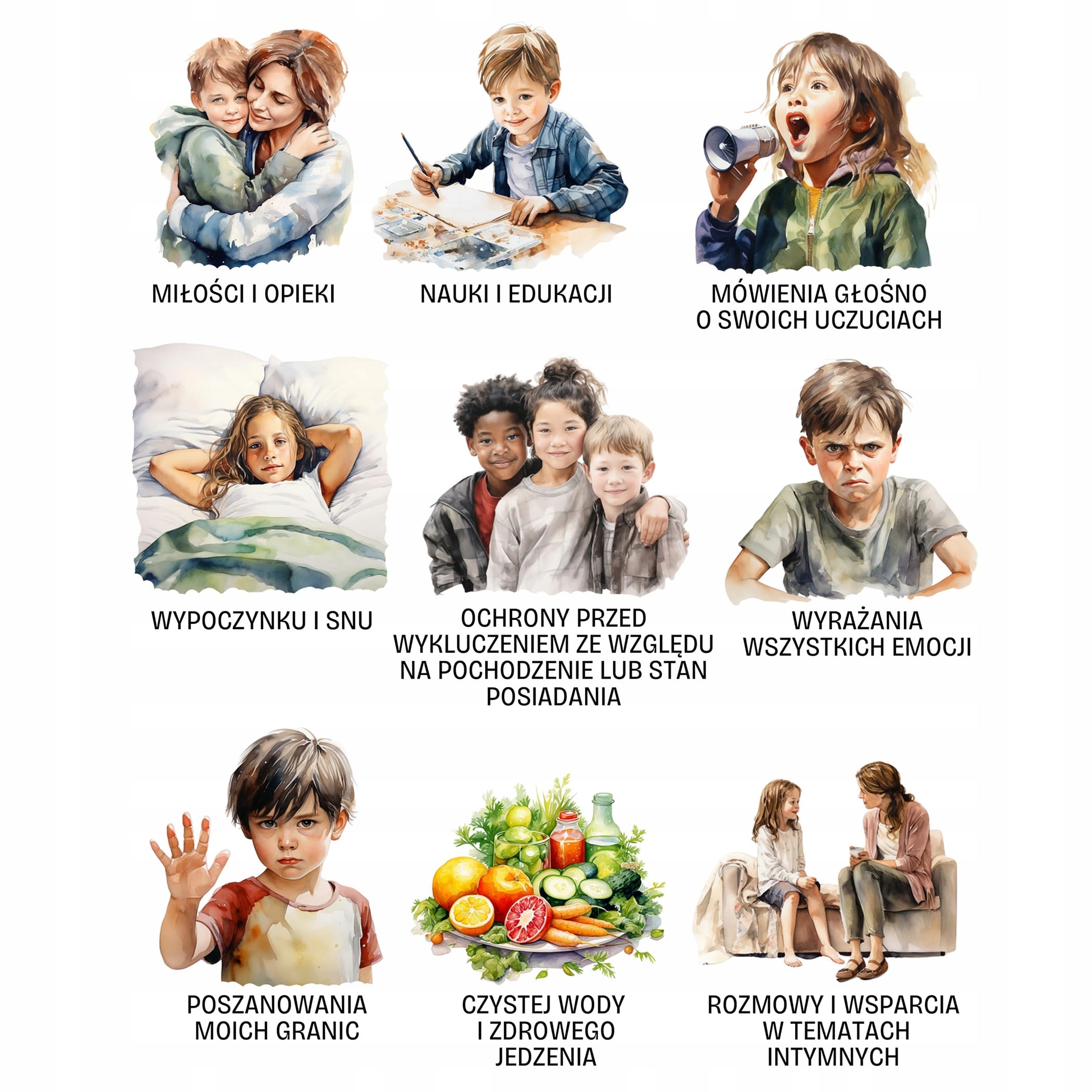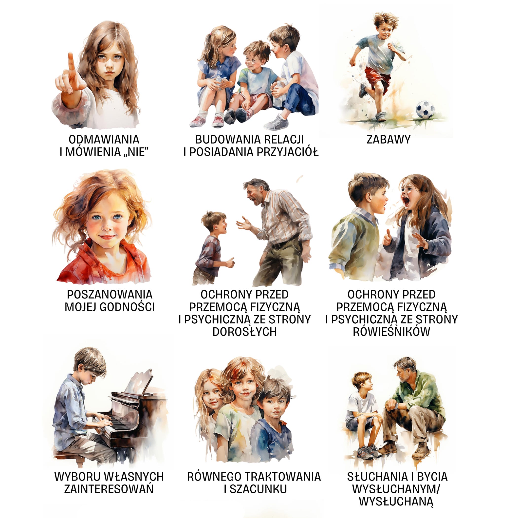 Плакат «Я маю право...» — це інструмент, який дає дітям впевненість у собі та відчуття безпеки. Це дороговказ для кожної молодої людини щодо того, чого можна очікувати від інших і якої поведінки слід Взаємна повага до прав дитини – це також питання надання їй належної допомоги в ситуаціях, коли її життю чи здоров’ю загрожує ризик.
