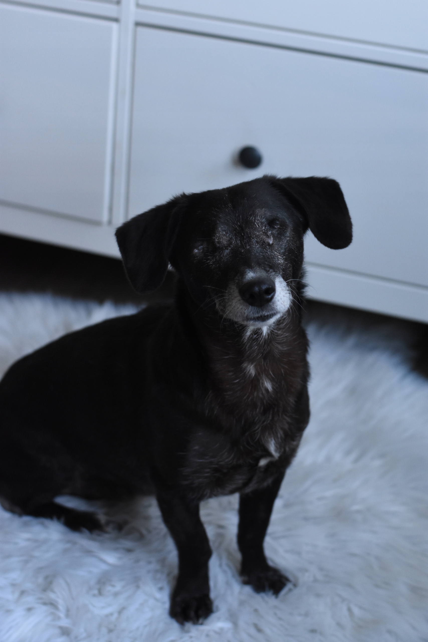 На фото нижче ви бачите сліпу самку на ім’я Мураха, яку ми зустріли взимку посеред сільської дороги. Собаку затримали в DT, а в лютому вона переїхала на постійне місце проживання.
