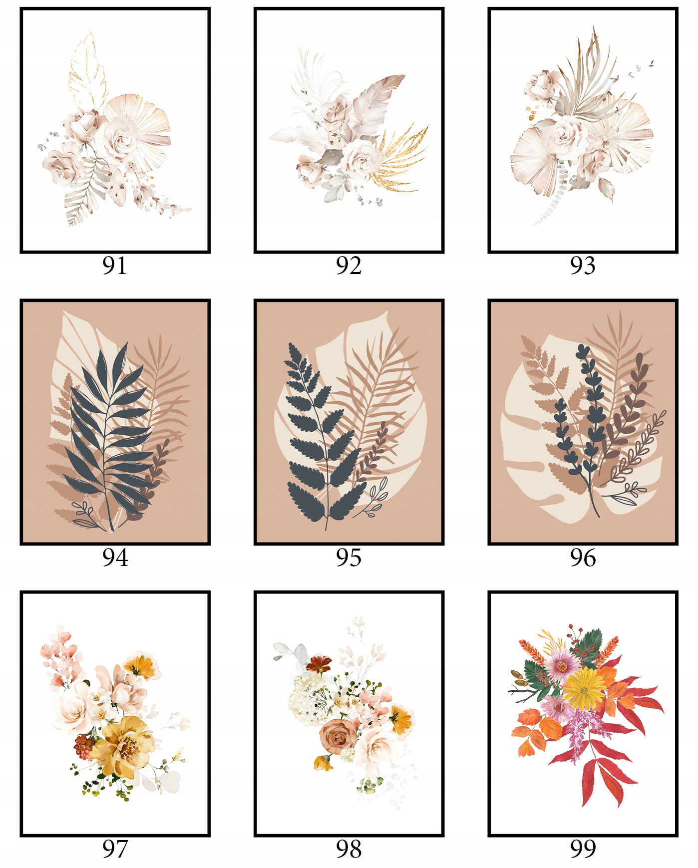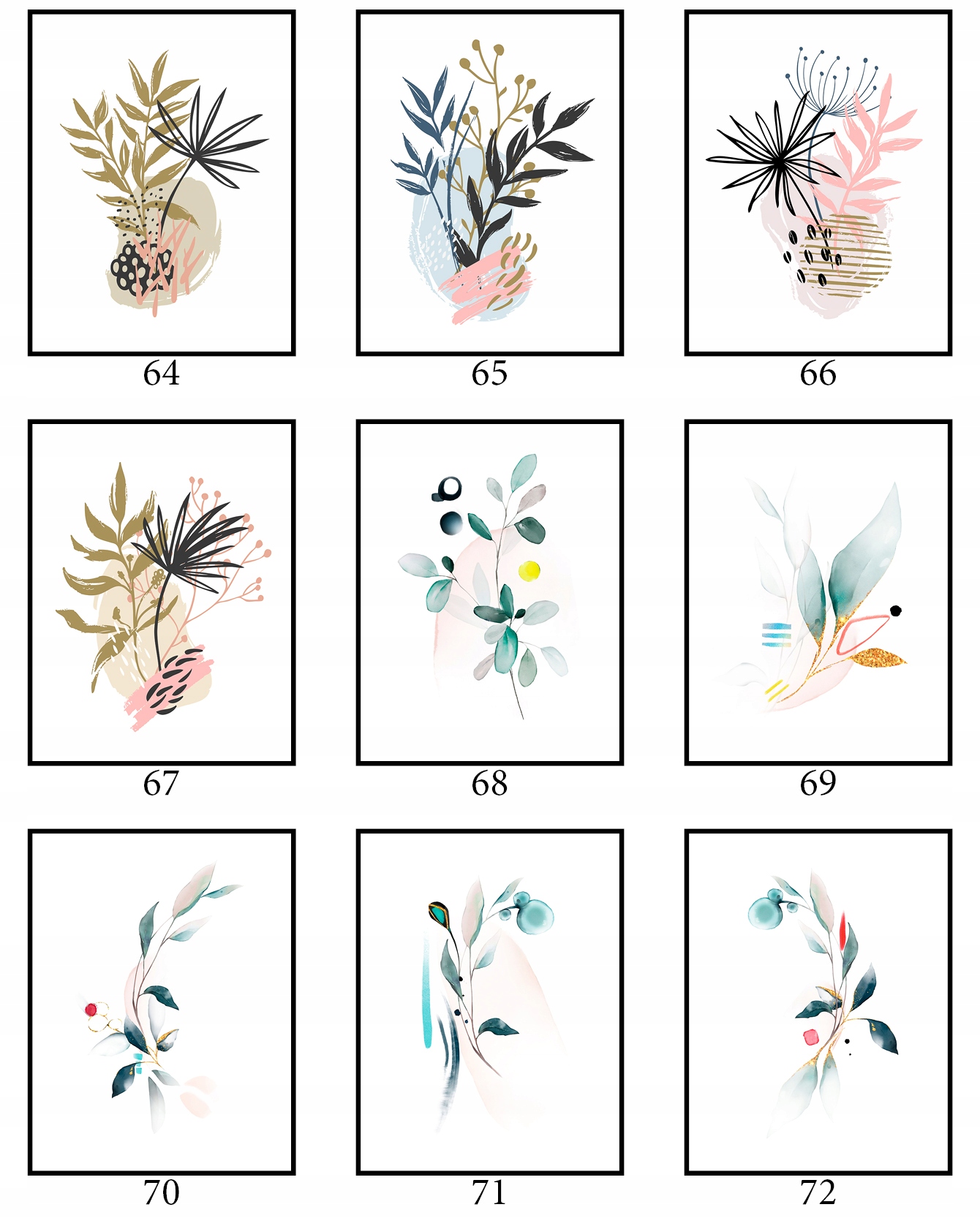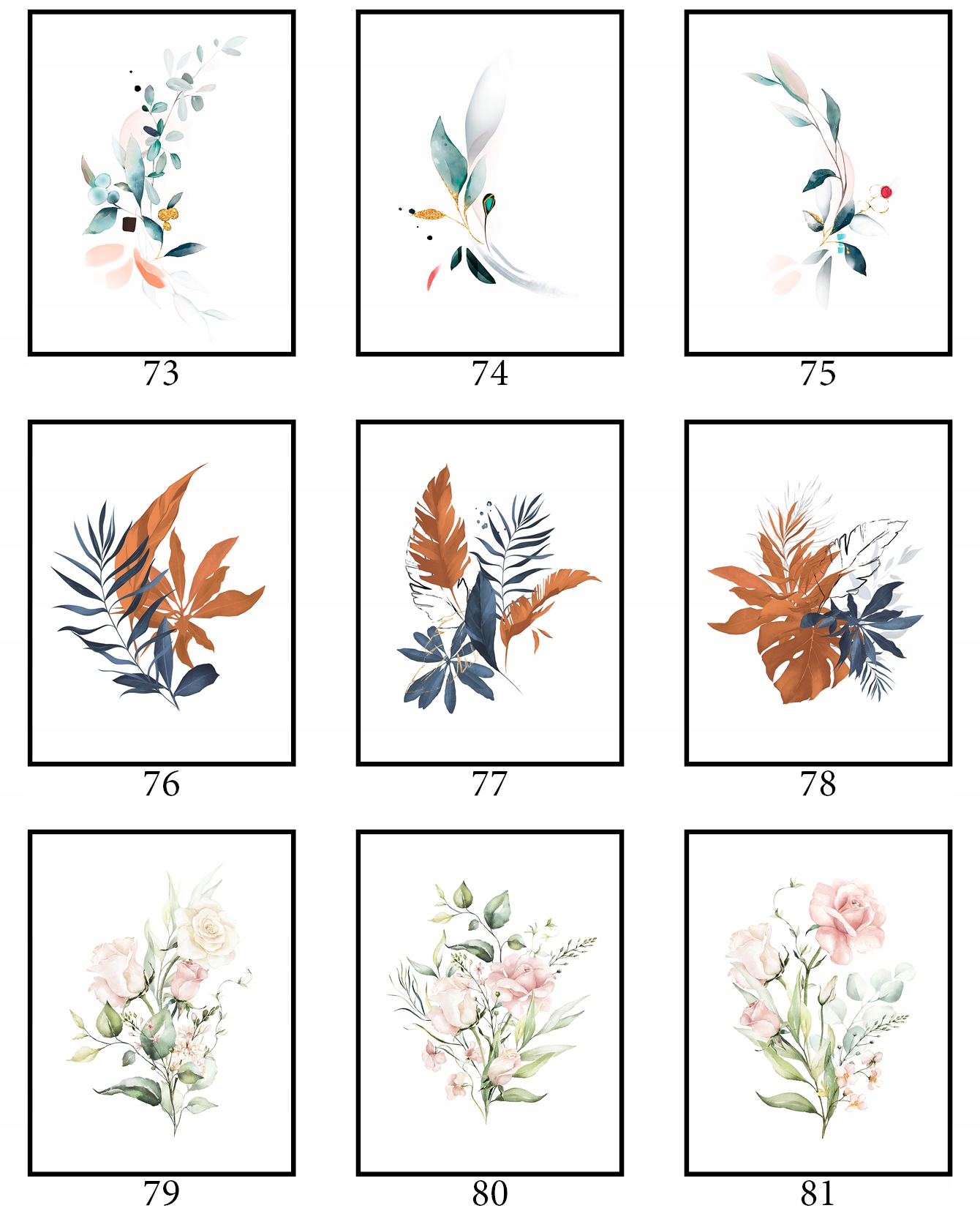 Плакат 40x50cm Багато конструкцій графічні рослини квіти ботаніки весняна природа