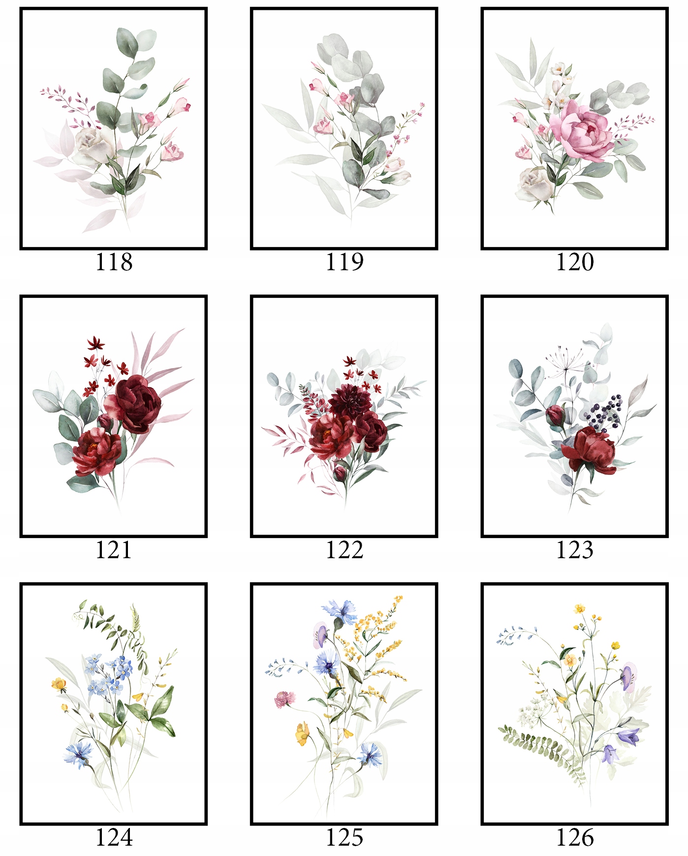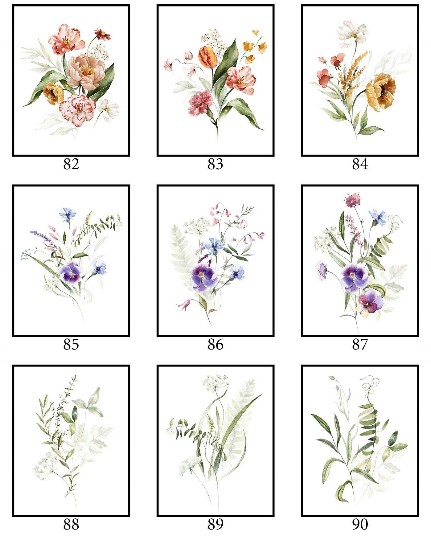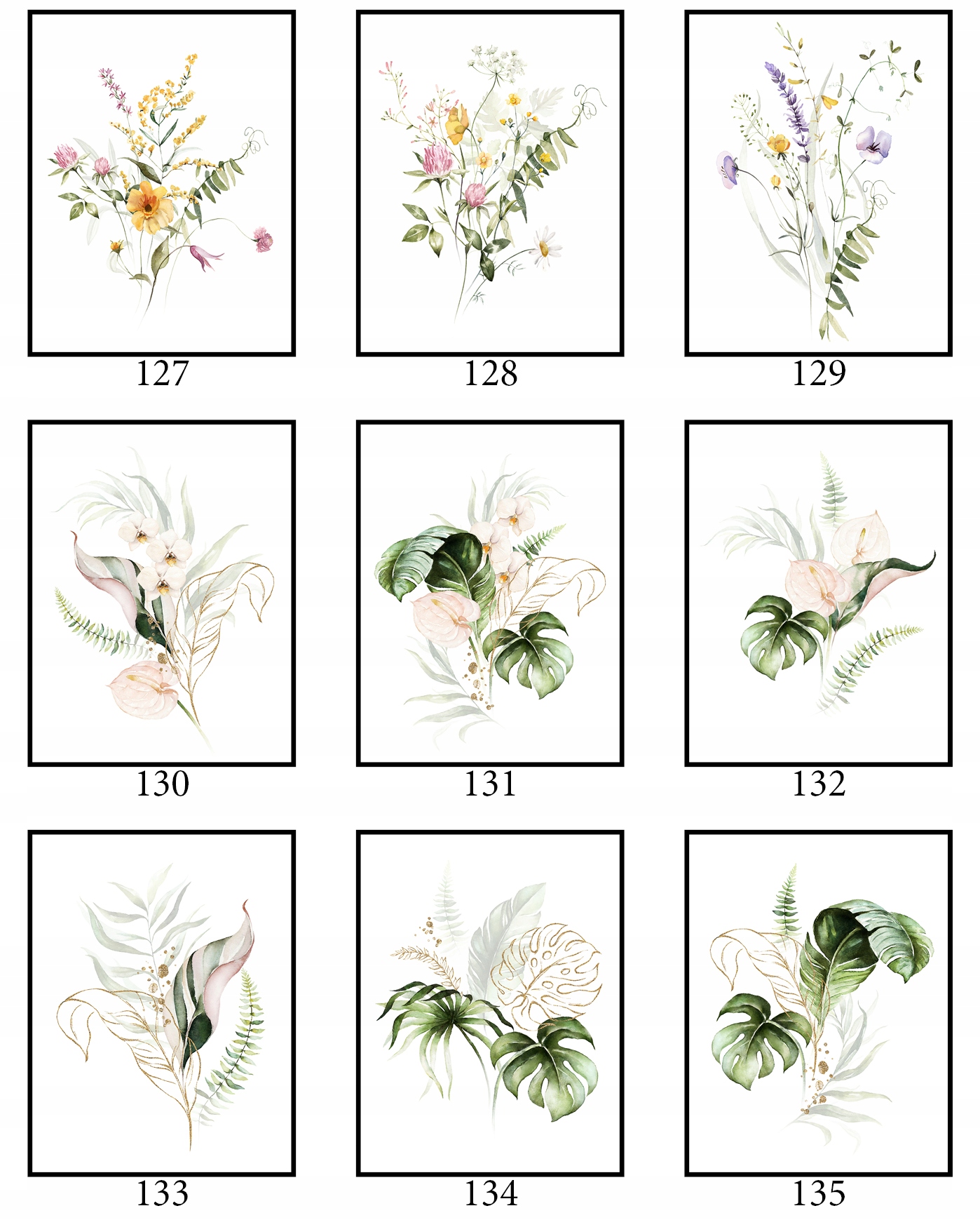 Плакат 40x50cm Багато конструкцій графічні рослини квіти ботаніки весняна природа