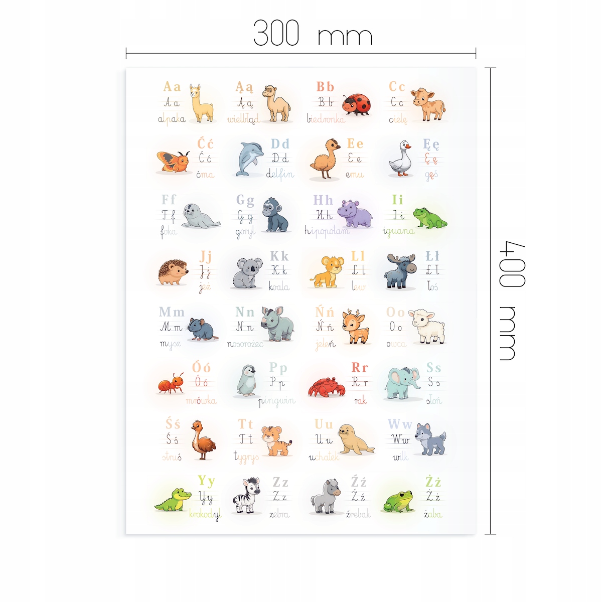 Плакат Абетка Монтессорі – Тварини – Освітній, Для Дітей – 30х40 см