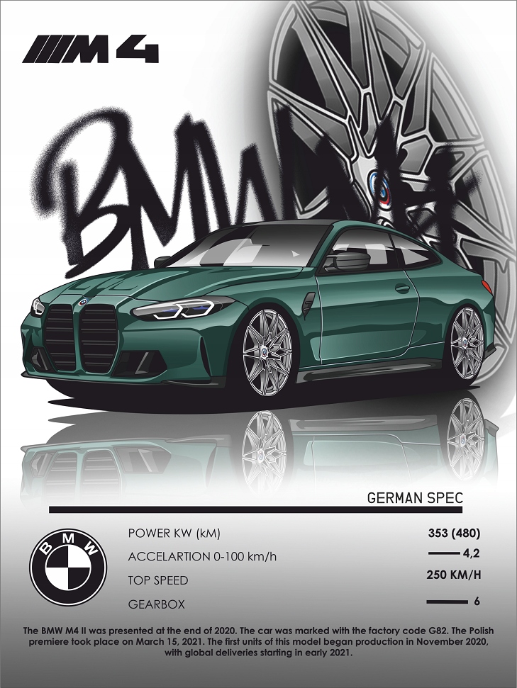Плакат BMW M4 G82 GERMAN SPEC формат А3