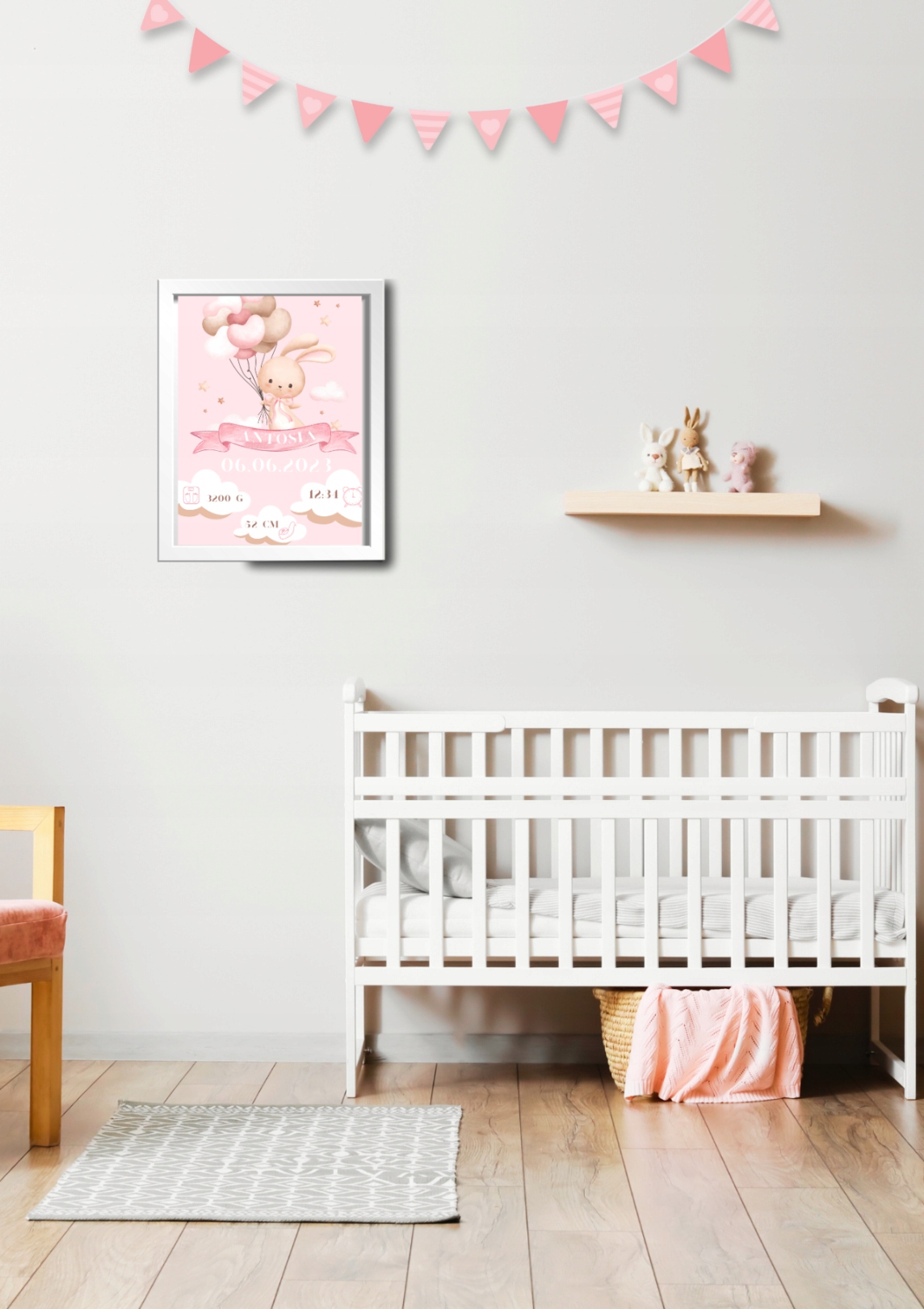 ПЛАКАТ ДИТЯЧИЙ Зайчик Рожевий Ім'я+Рамка