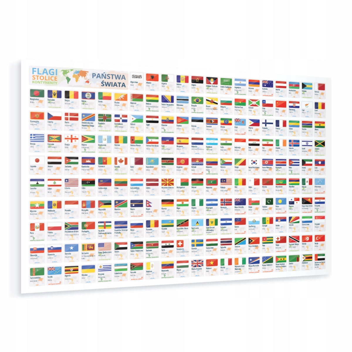 Plakat Flagi Państw i Stolice Świata Kraje Edukacyjny Szkoła A2 60x40 (K)