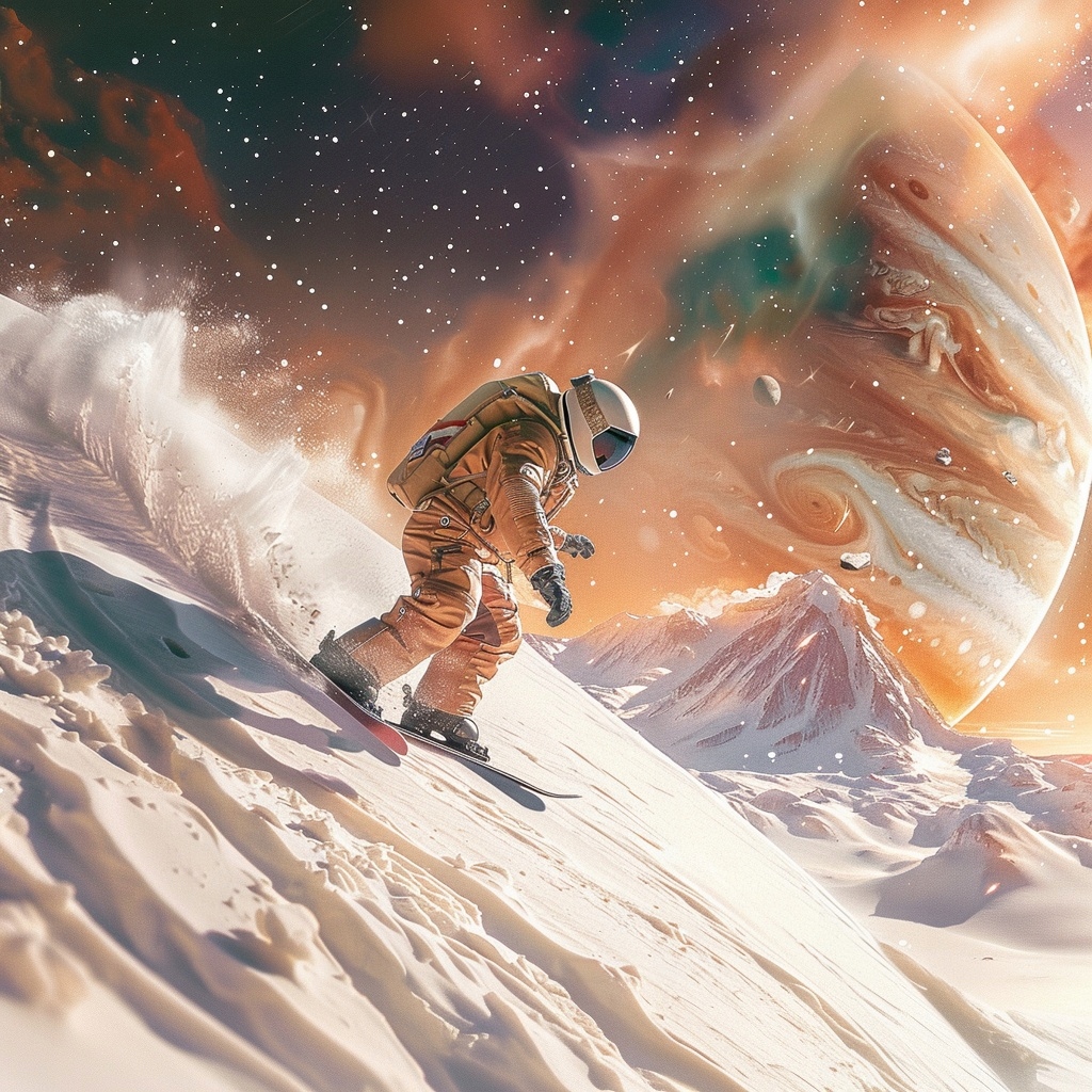 ПЛАКАТ КОСМІЧНІ ЛИЖІ КОСМОНАВТ ЛИЖІ ЮПІТЕР 40x40