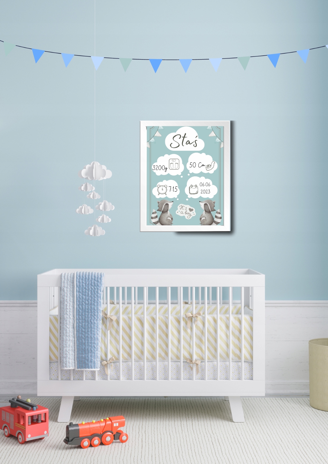 ПЛАКАТ НА ДЕНЬ НАРОДЖЕННЯ ДИТЯЧОГО ПЛАКАТ Baby Boho Ім'я+рамка