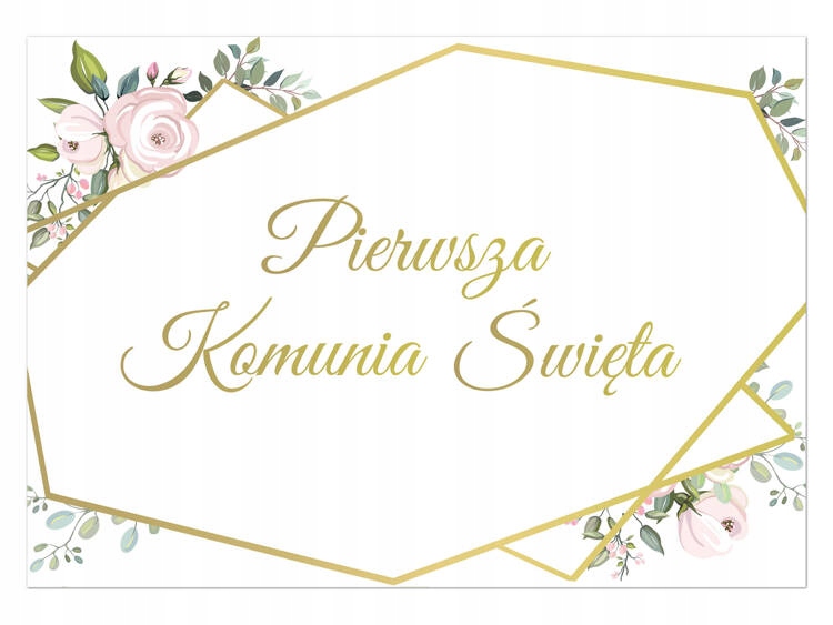 ПАПЕРОВИЙ ПЛАКАТ ДЛЯ ПРИЧАСТЯ ПЕРШЕ ПРИЧАСТЯ РОЖЕВІ ТРОЯНДИ 68X48СМ