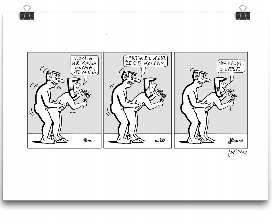 Обираючи оригінальний плакат Andrzej Mleczko з нашої пропозиції, ви можете бути впевнені, що отримаєте високоякісний продукт. Відбитки спеціально підготовлені з увагою до кожної деталі. Ми докладаємо всіх зусиль, щоб весь асортимент, підписаний Анджеєм Млечко, відповідав найвищим стандартам якості. Ви можете бути впевнені, що придбаний вами постер стане ідеальним подарунком близькій людині та вишуканим доповненням до вашого інтер'єру.