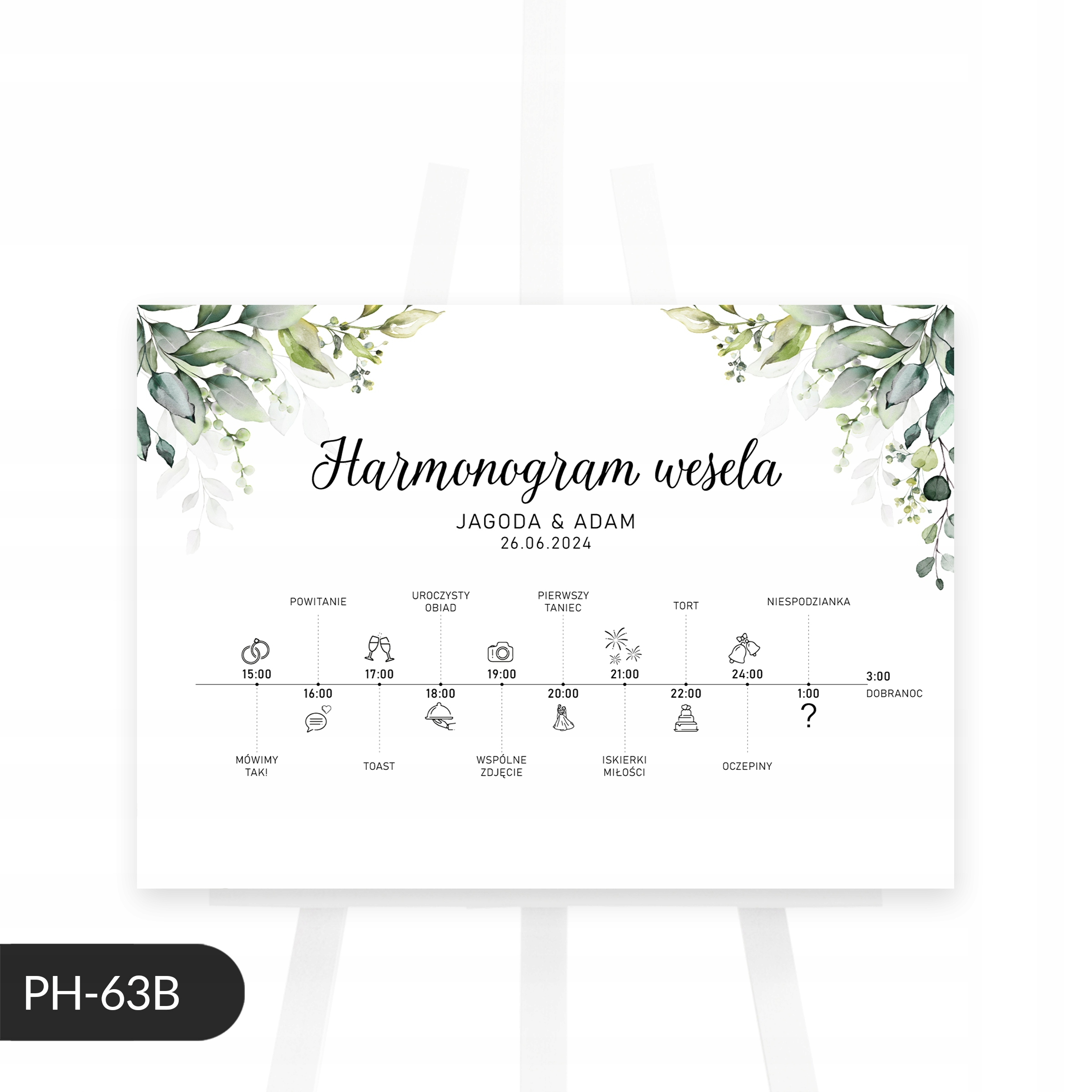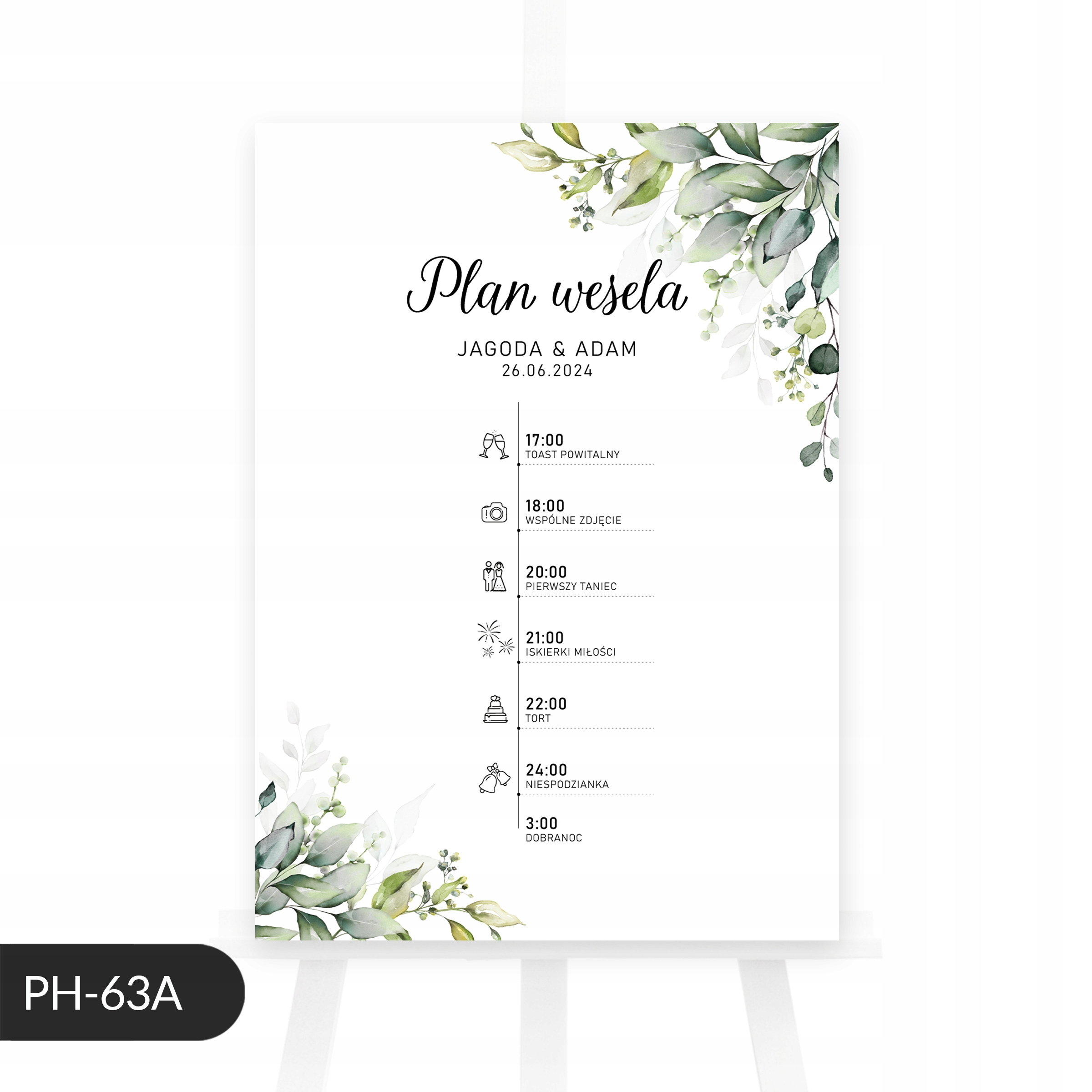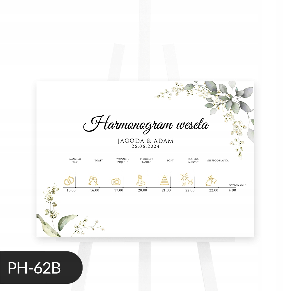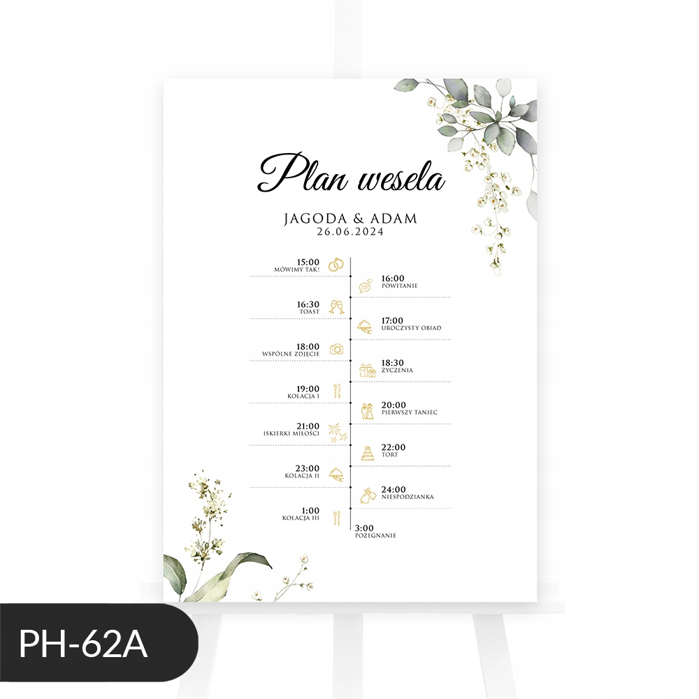 Плакат з розкладом весілля з евкаліптом