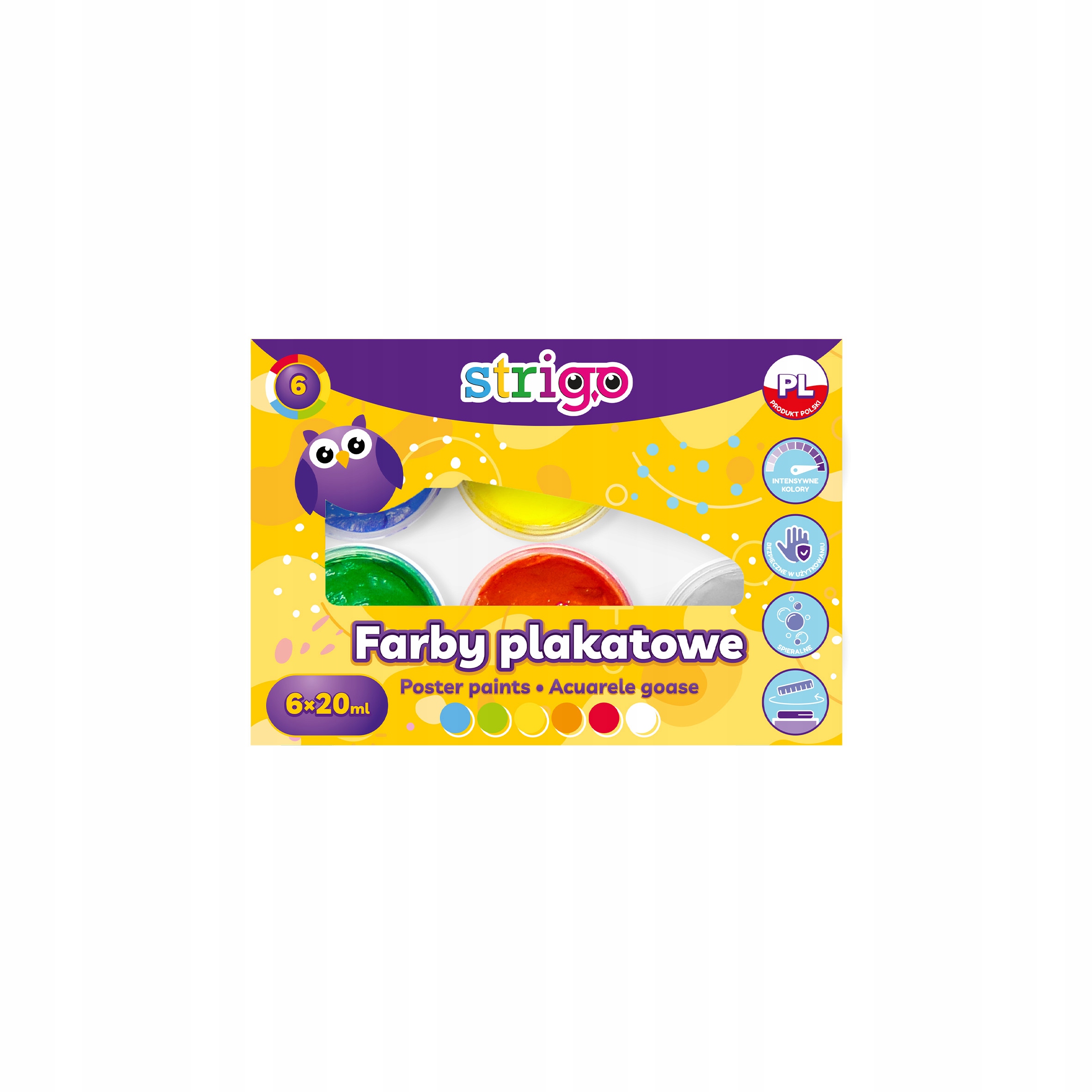 Набір фарб для плакатів у 6 класичних кольорах STRIGO, що дає безмежні можливості для розваги та створення нових кольорів.