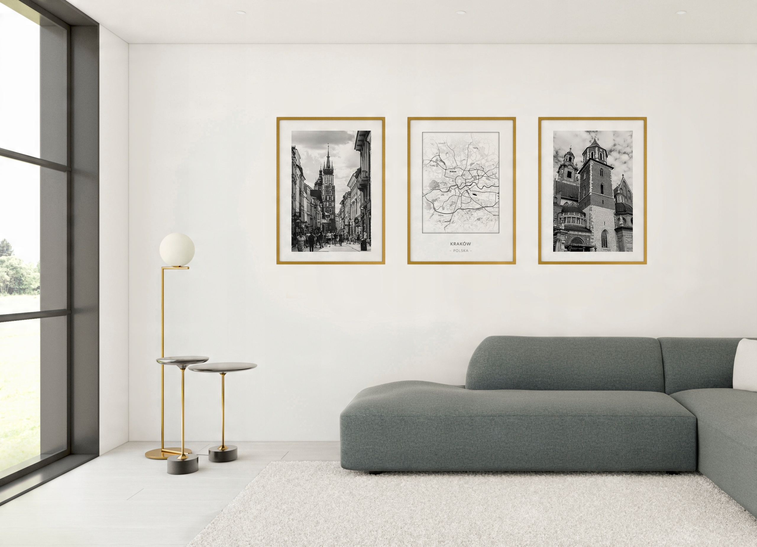 Набір із трьох сучасних картин/постерів у рамах.