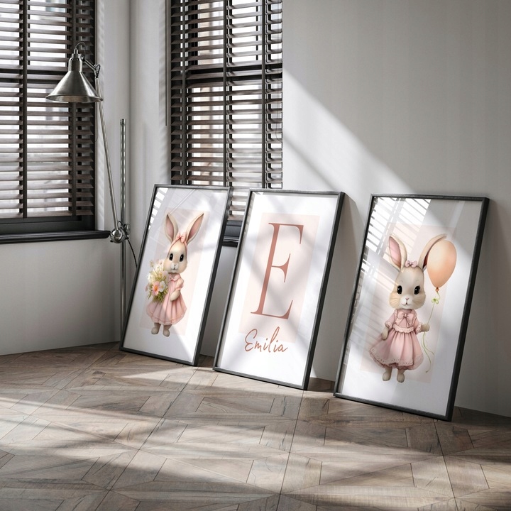 ПЛАКАТИ З ЗАЙЧИКАМИ РОЖЕВІ ПРИКРАСИ СТІН ПОДАРУНОК ДЛЯ ДІВЧИНКИ