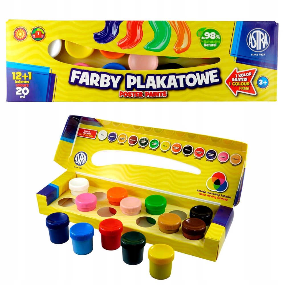 ►Фарби для плакатів ASTRA 13 кольорів 20 мл - 12 + 1 колір БЕЗКОШТОВНО ◄