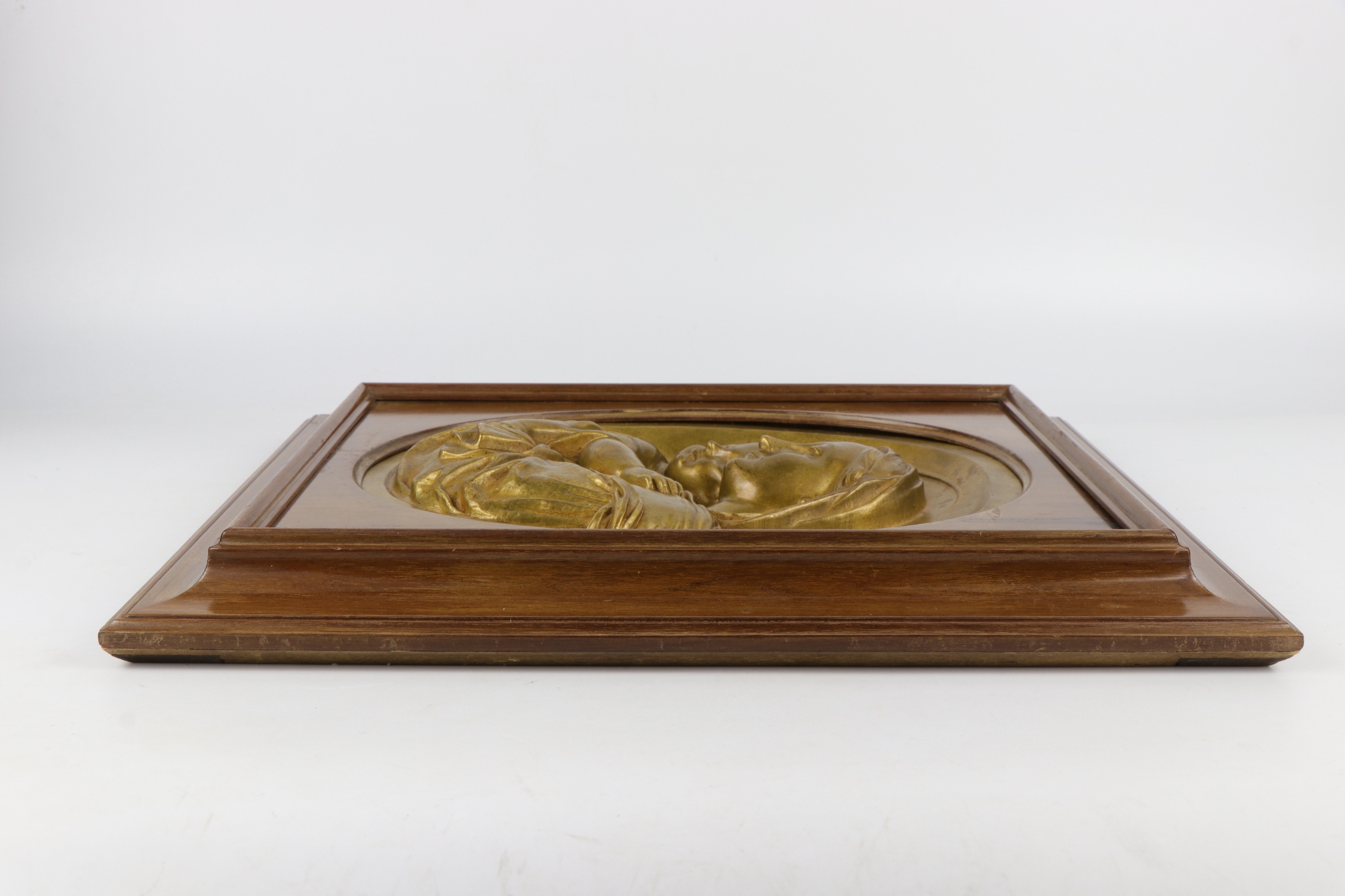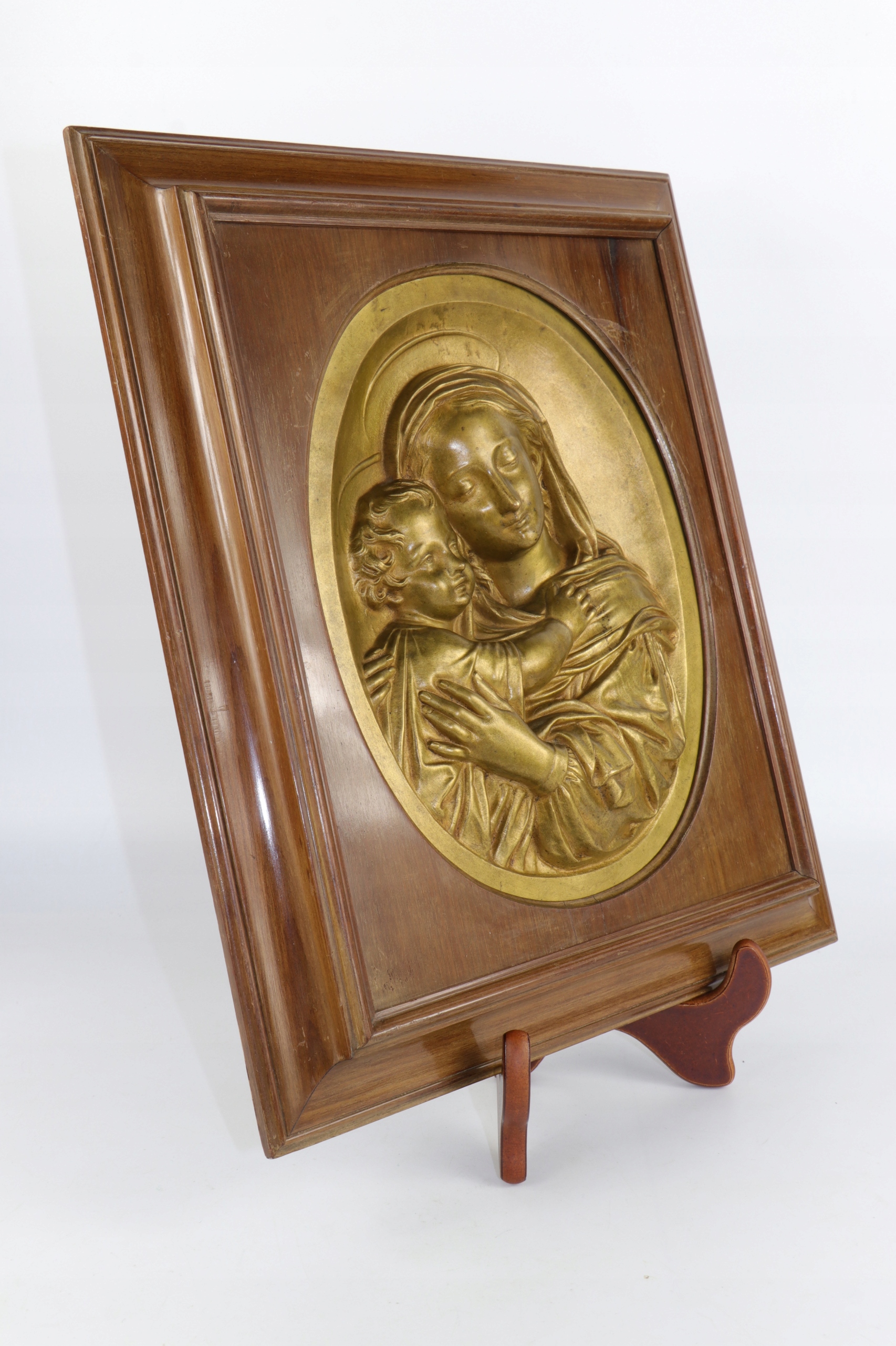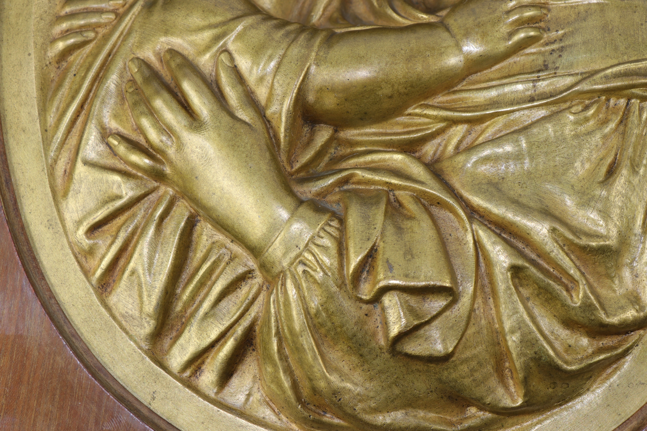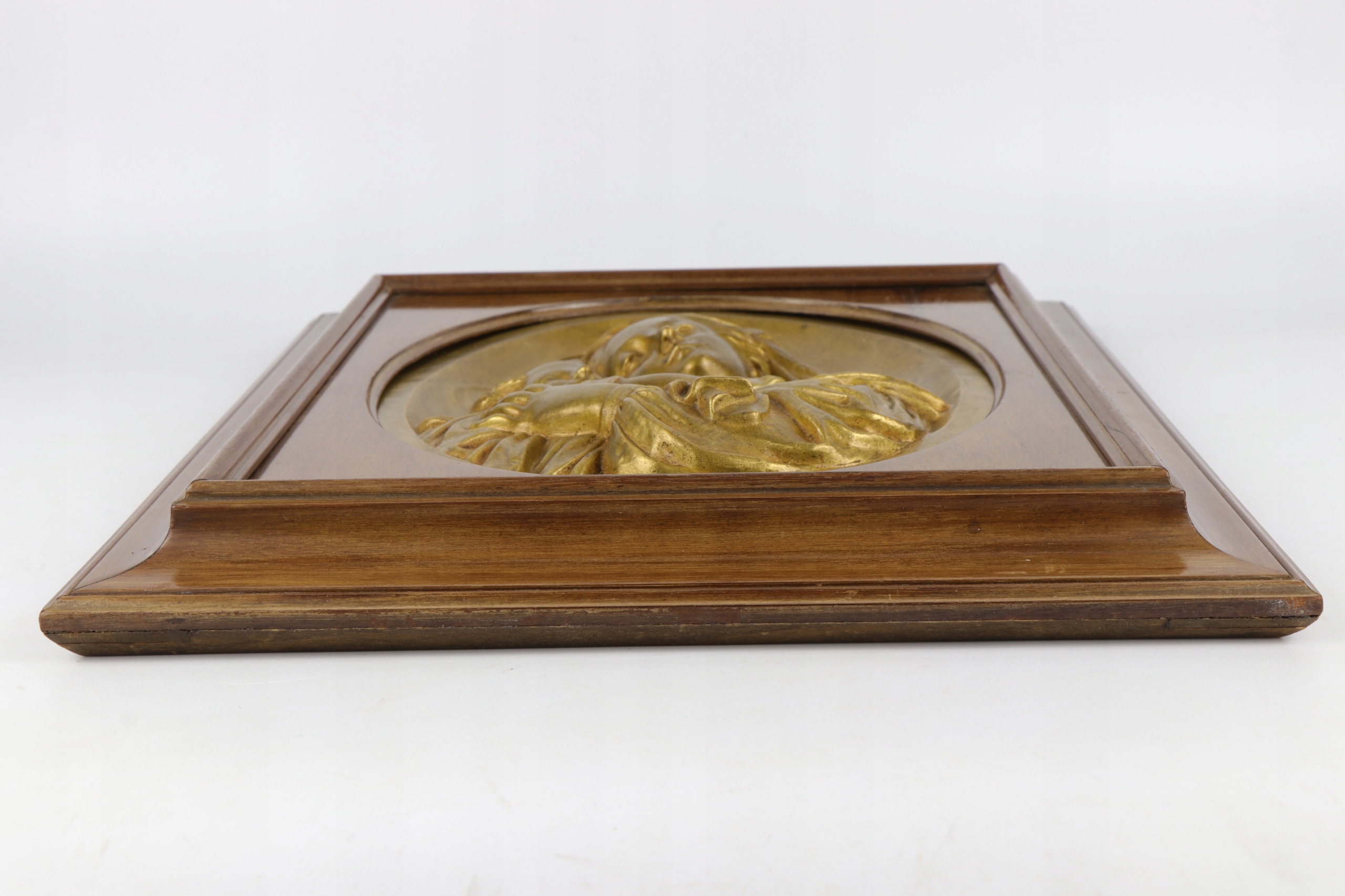Plakieta Brąz złocony Madonna z Dzieciątkiem XIX wiek Antyk