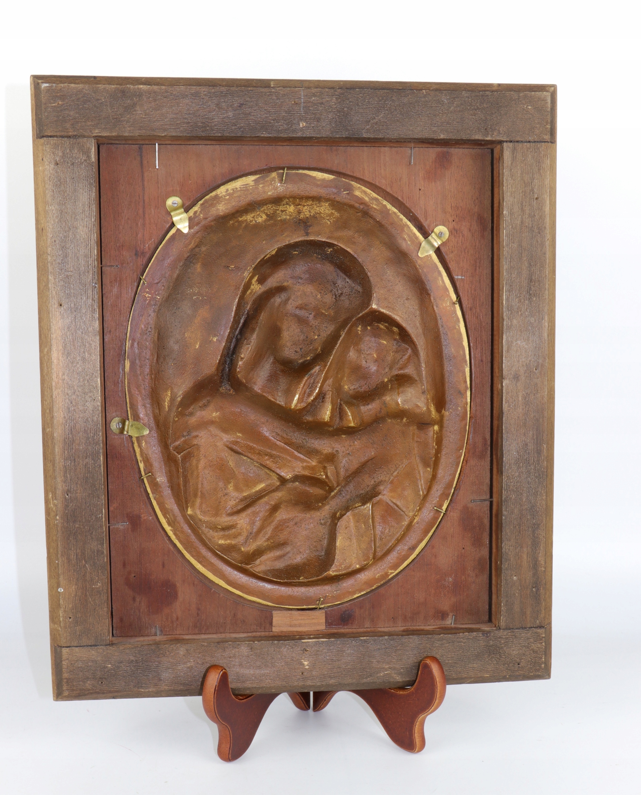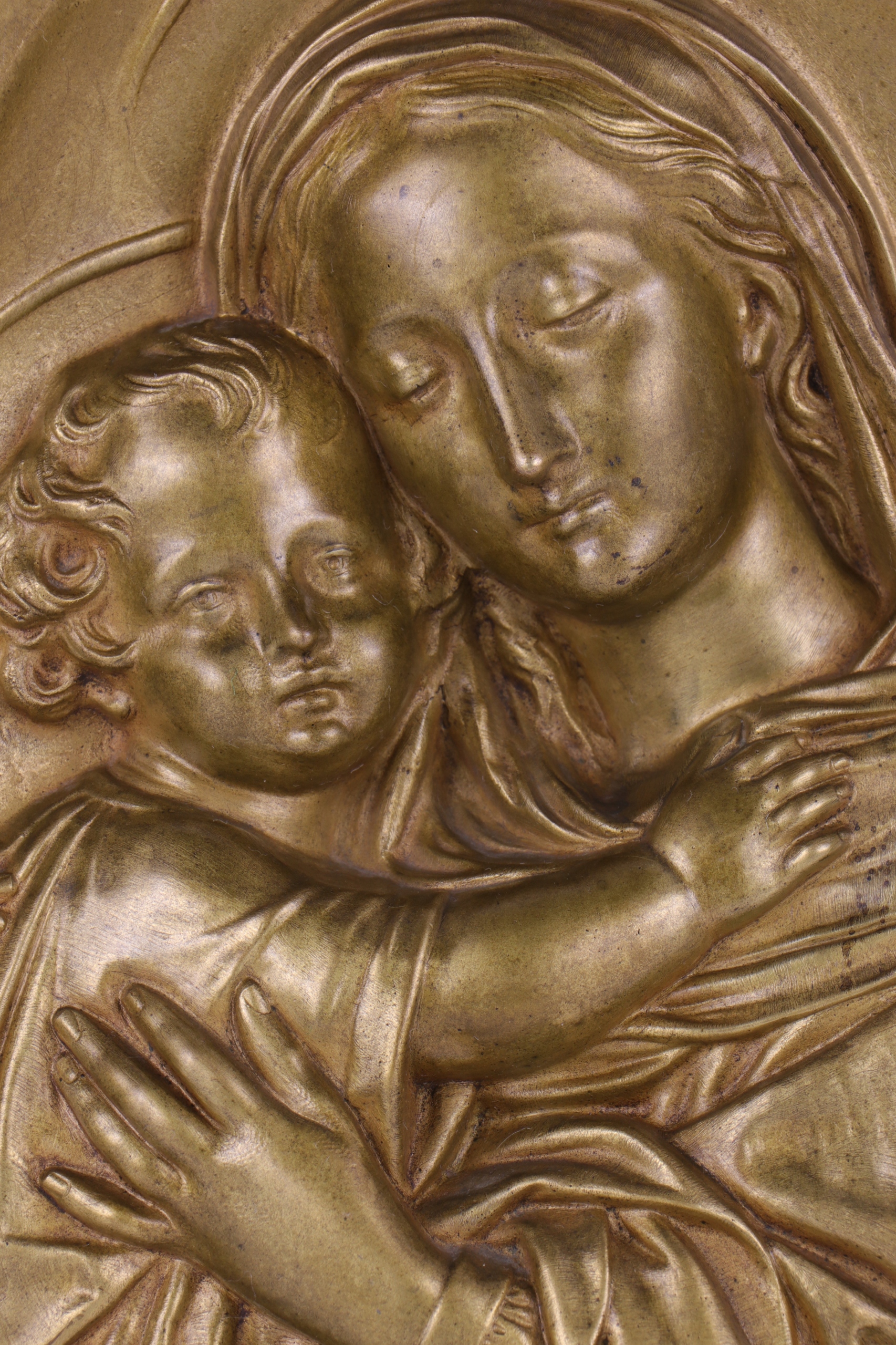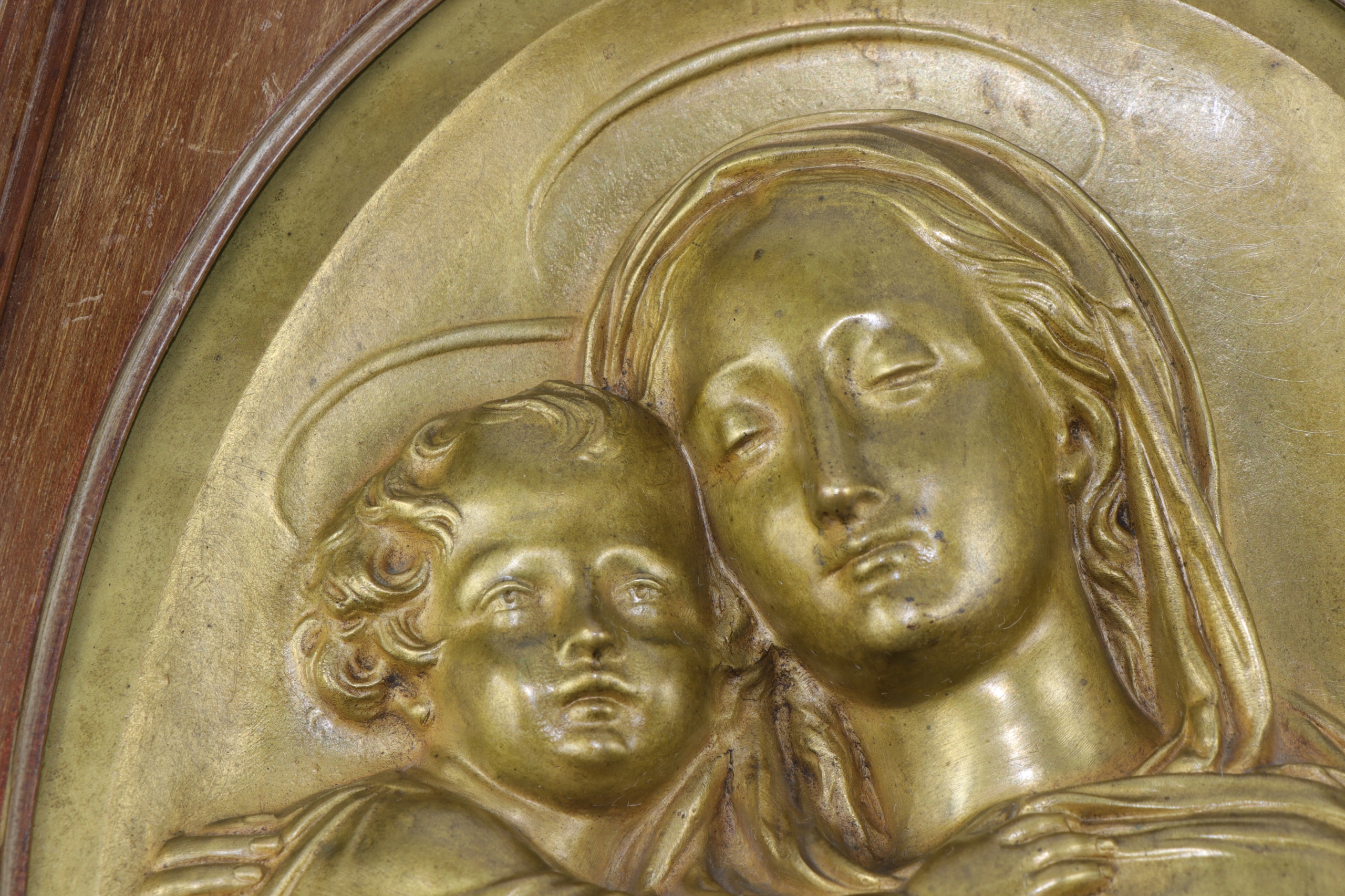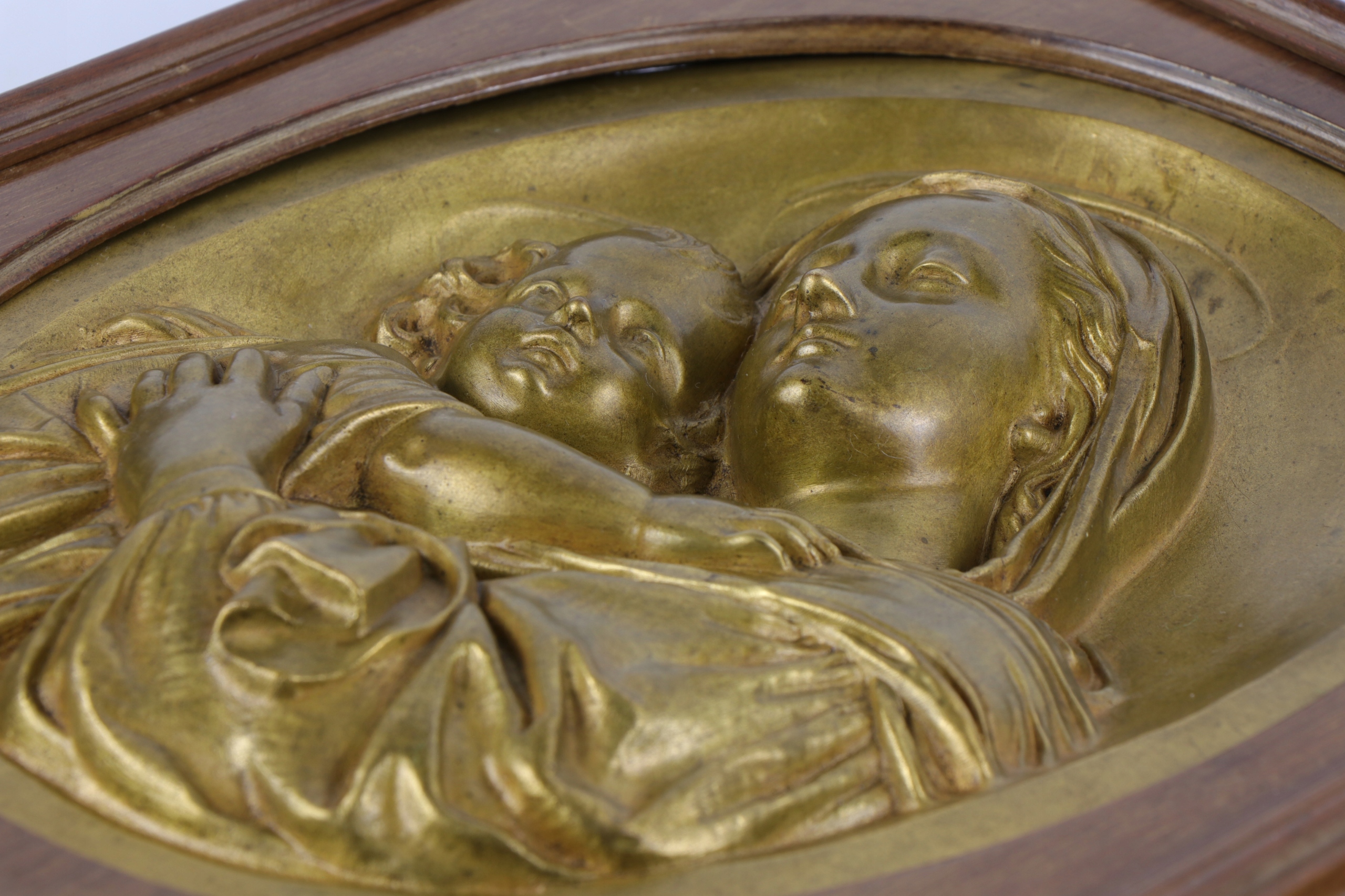 Plakieta Brąz złocony Madonna z Dzieciątkiem XIX wiek Antyk