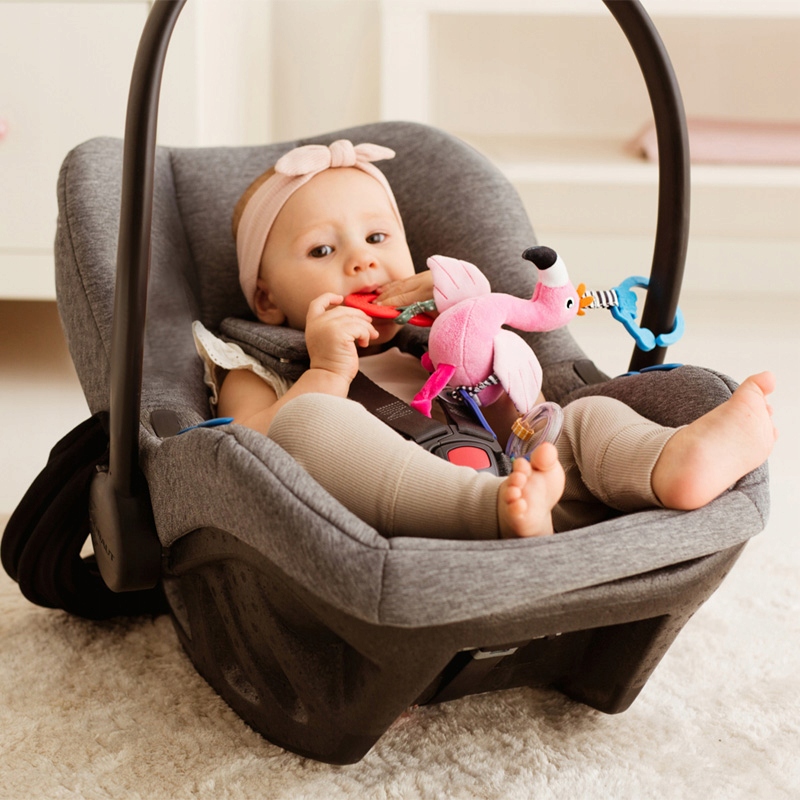 Райська атмосфера на кінчиках пальців дитини! Різнокольоровий фламінго підніме настрій малюкові та розважить його. Крила пташки прикрашені додатковими іграшками у вигляді двох різнокольорових м'яких прорізувачів. До іграшки також додається кільце-брязкальце, наповнене різнокольоровими кульками. Фламінго виготовлено з матеріалів з різними текстурами, які стимулюють відчуття дотику малюка, заохочуючи його досліджувати світ сенсорними засобами. Практична ручка на підвісці дозволяє легко прикріпити іграшку в будь-якому місці. Виріб призначений для дітей від народження.