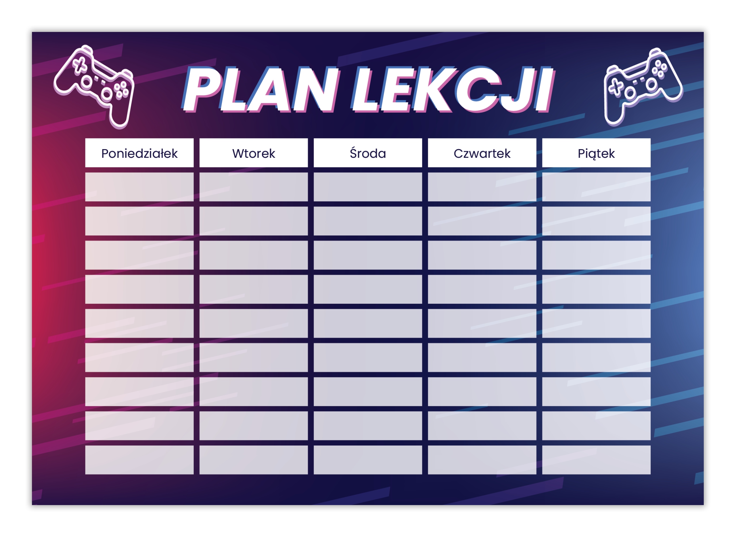 Динамічний, натхненний світом ігор, мотив з колодками робить кожен шкільний день стає все більш захоплюючим! Прозора система полегшує уроки планування та обов'язки, що допомагає зберегти порядок протягом тижня. Ідеально підходить для молодого шанувальника відеоігор або як доповнення до ноутбука.